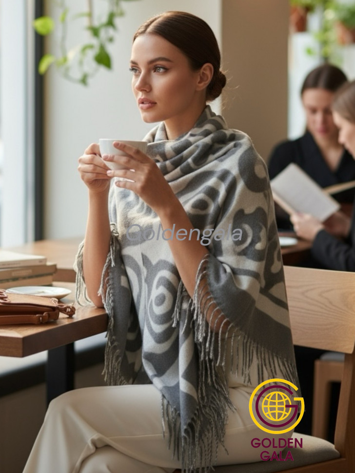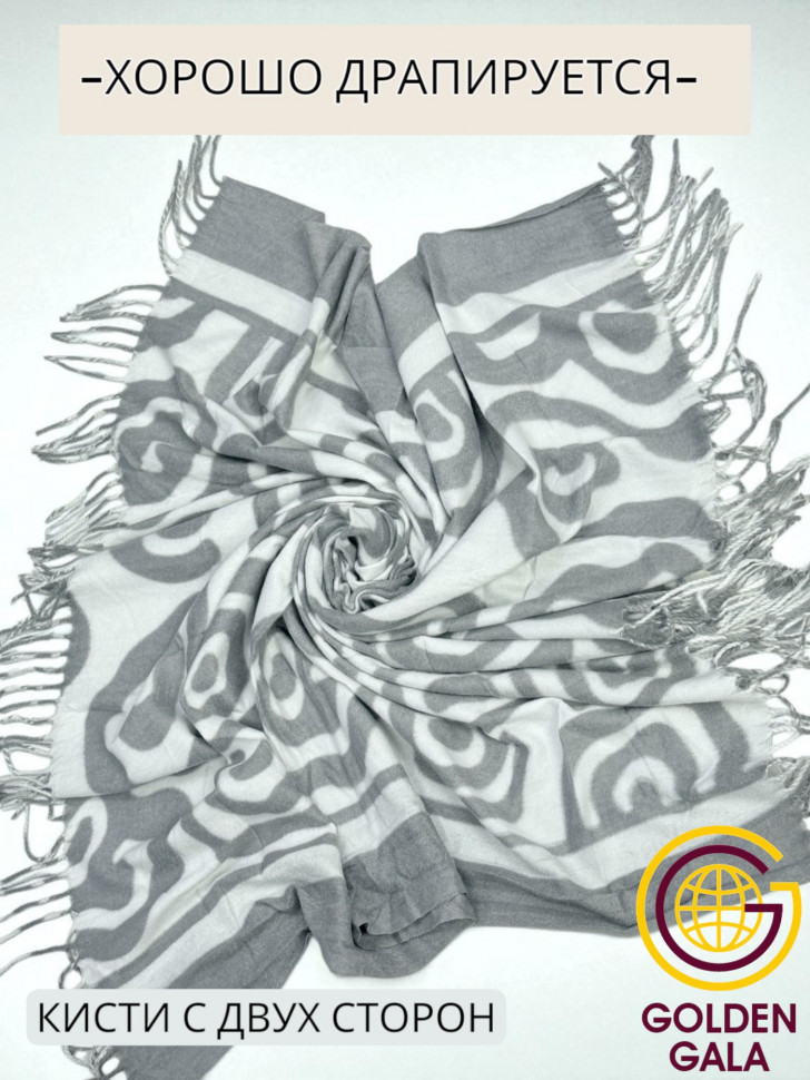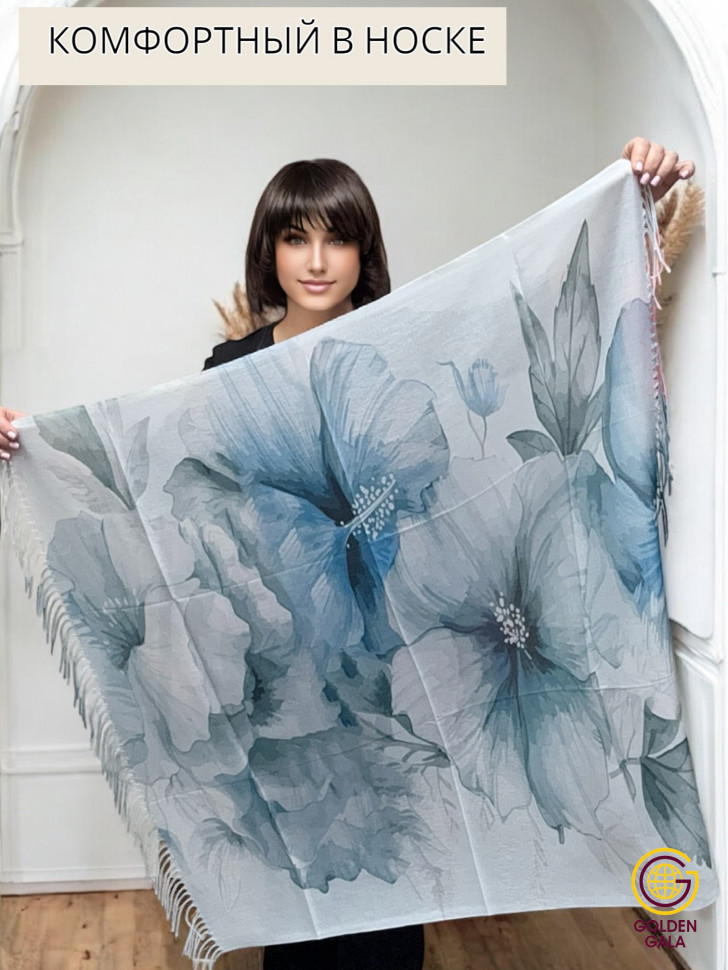 Платок теплый кашемировый с 3D принтом Арт 2591П/08 10 фото