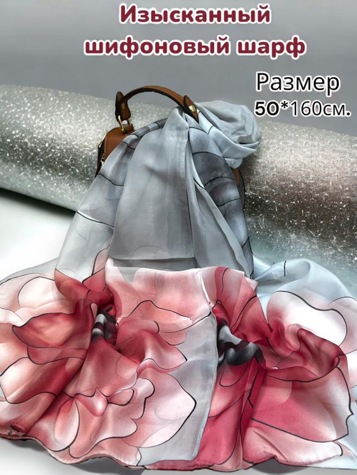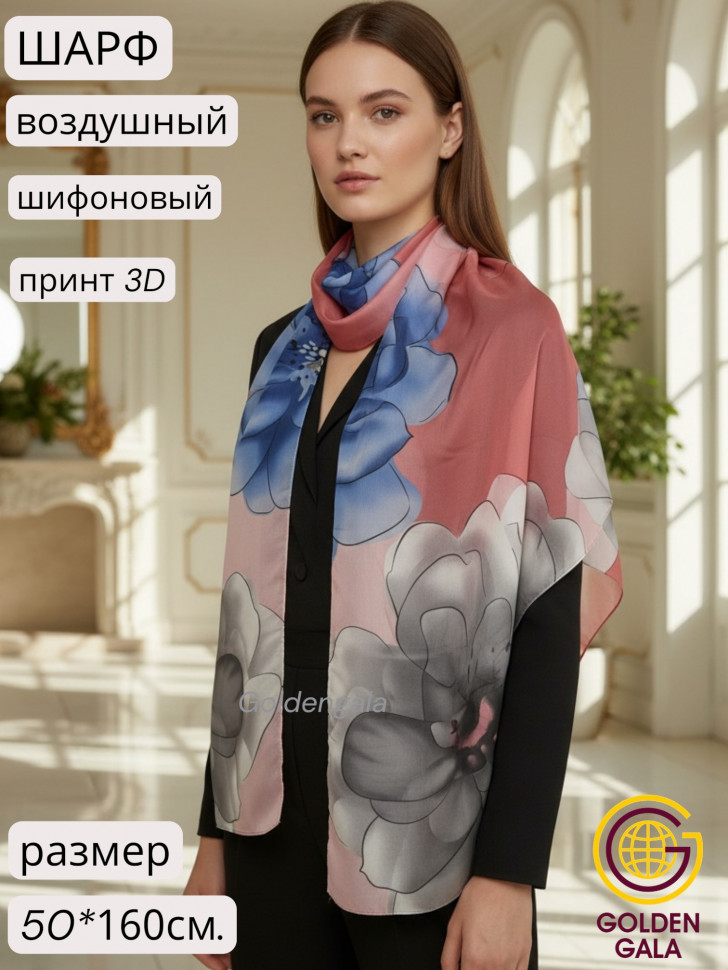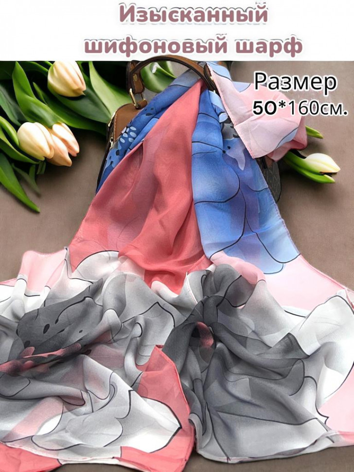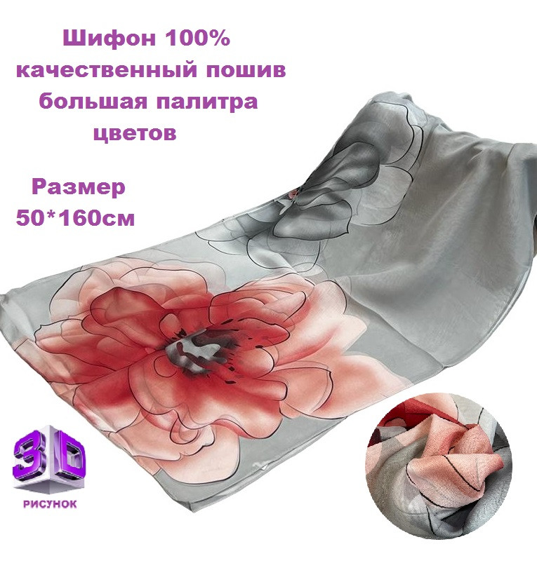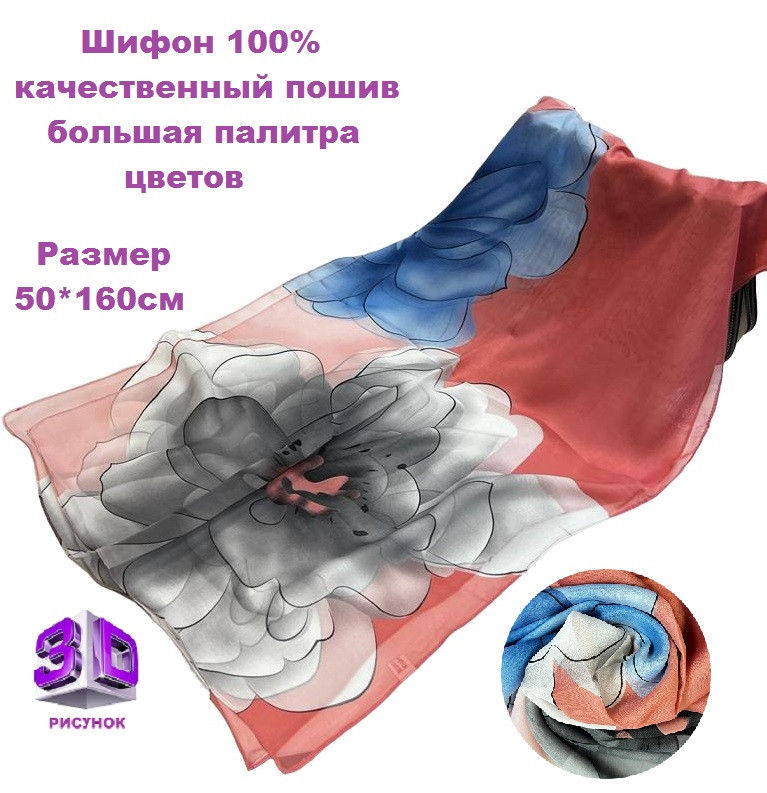Шарф шифоновый с цветочным рисунком 3D Арт М52/2 10 фото