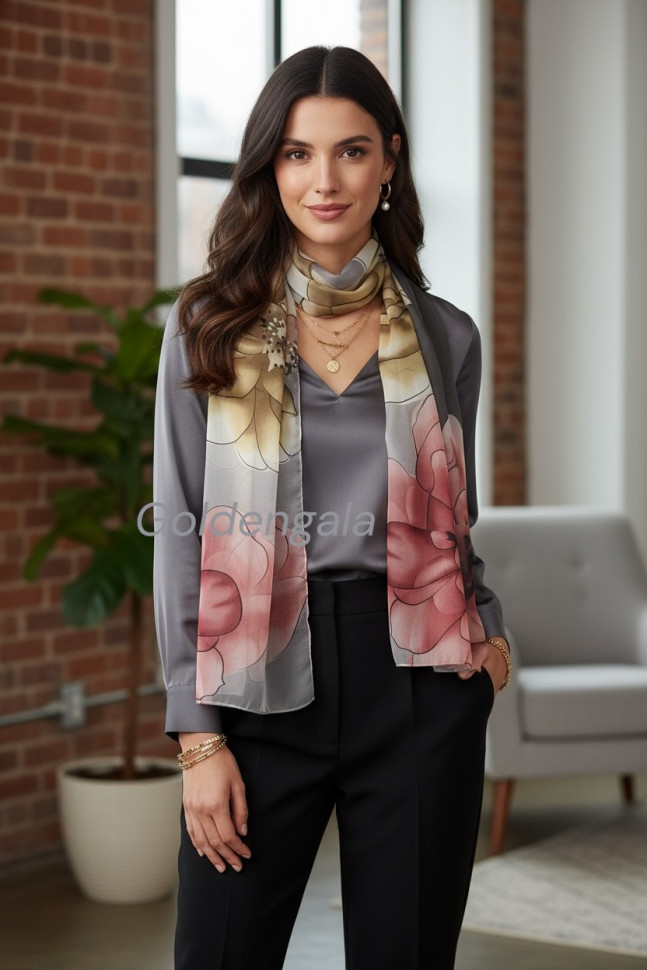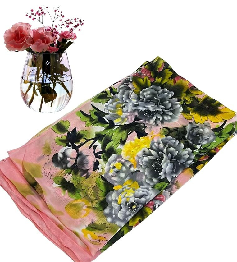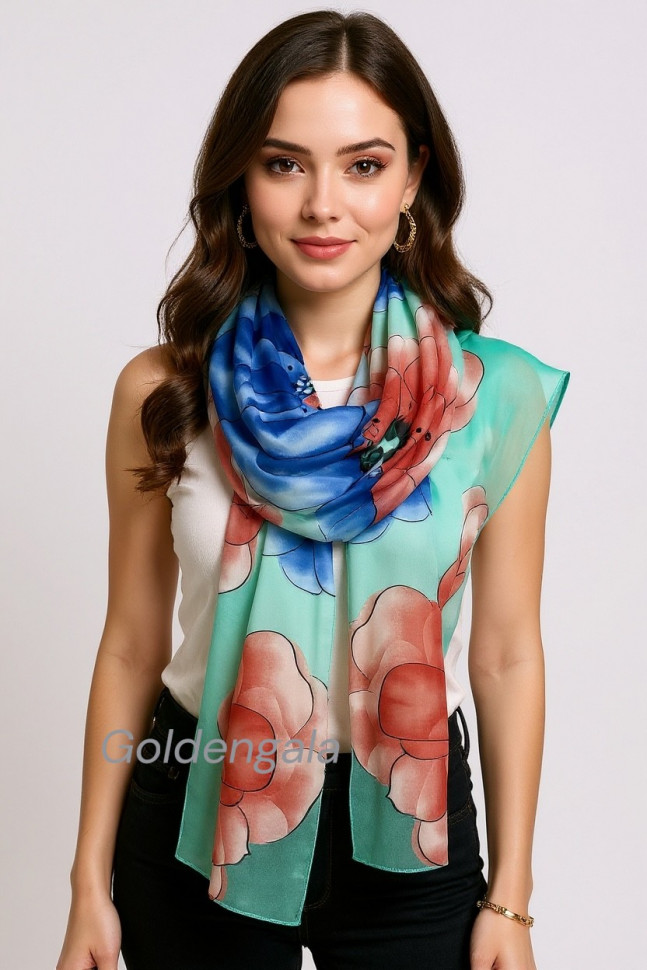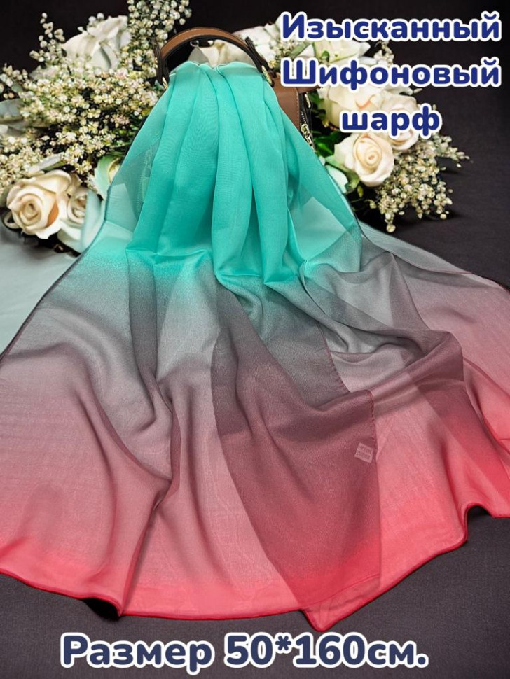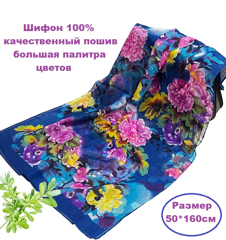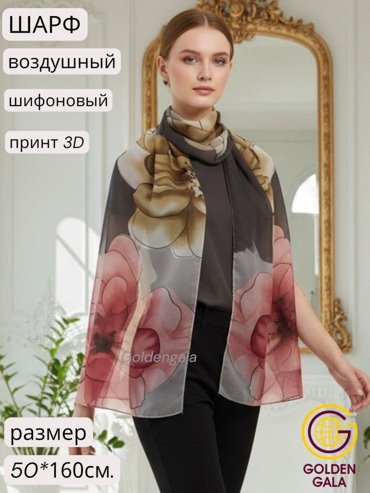 Шарф шифоновый с цветочным рисунком 3D Арт М52/2 10 фото