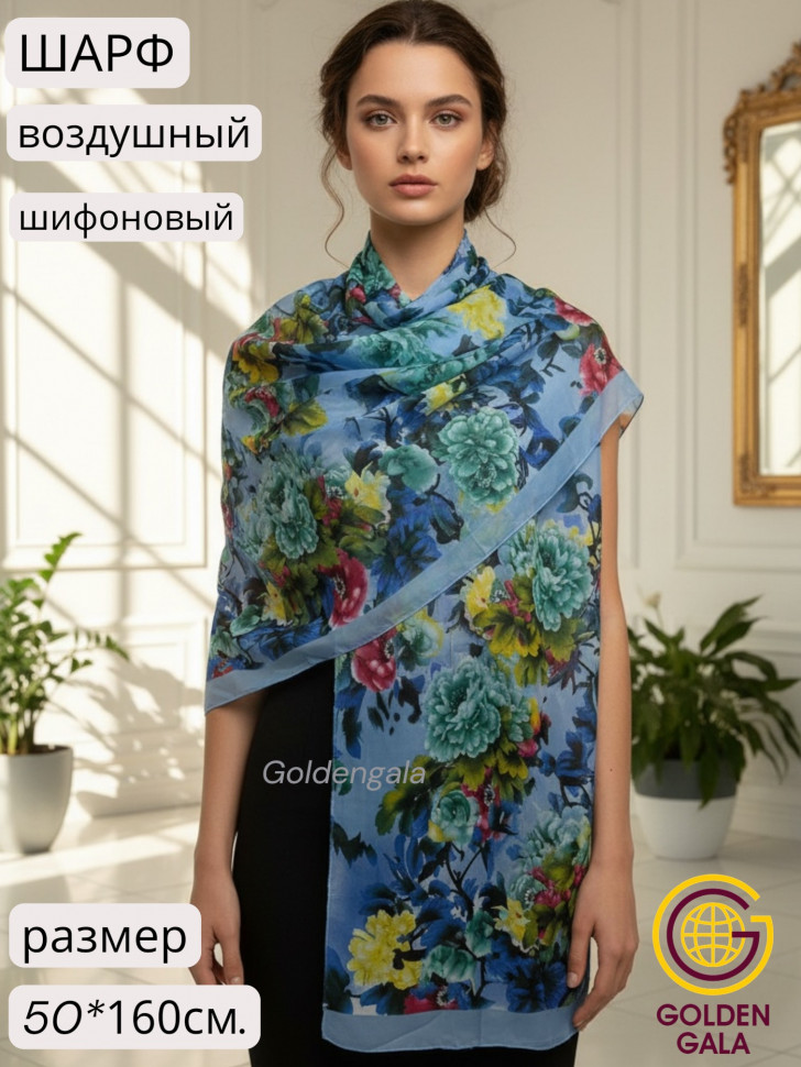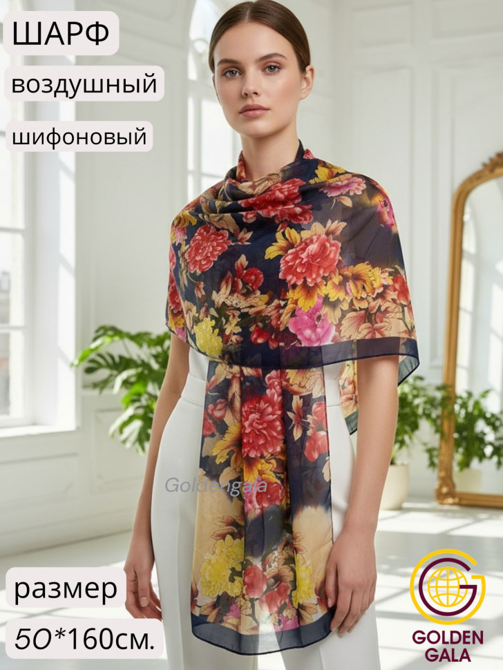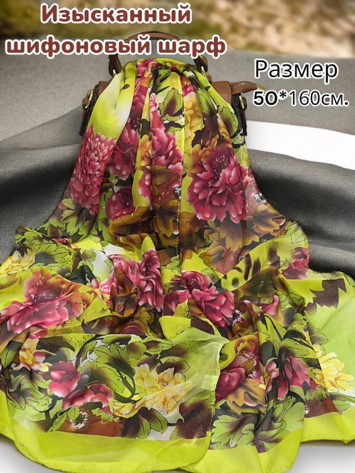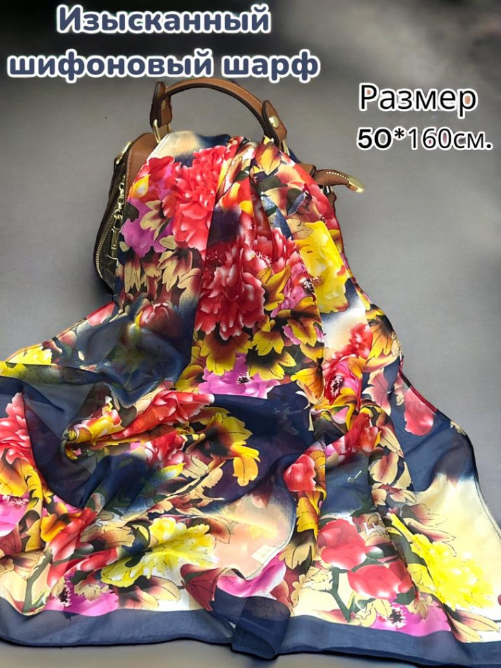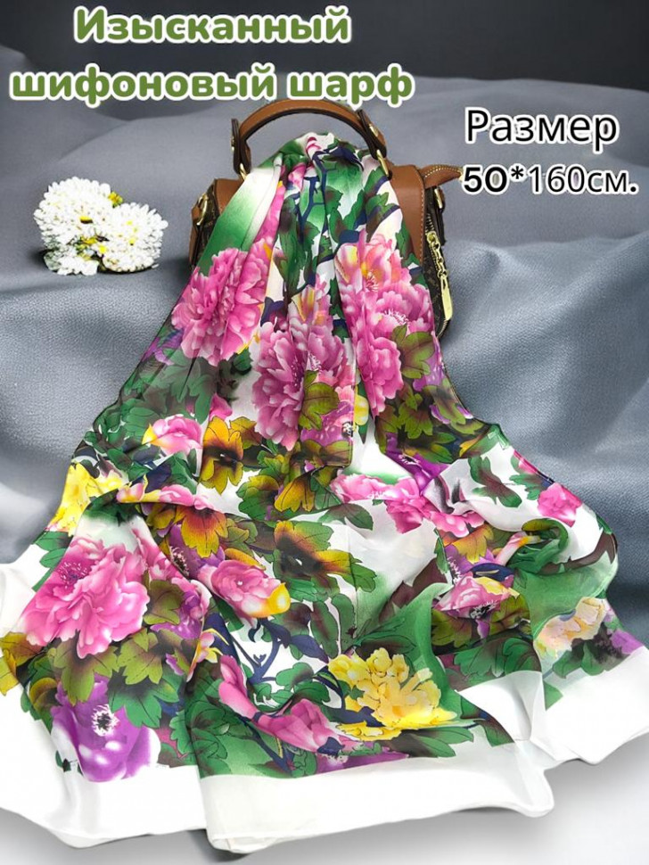 Шарф шифоновый с цветочным принтом Арт 0981/7 10 фото