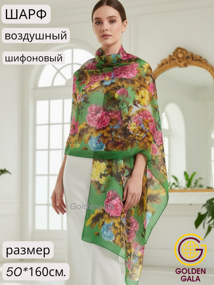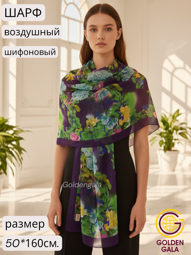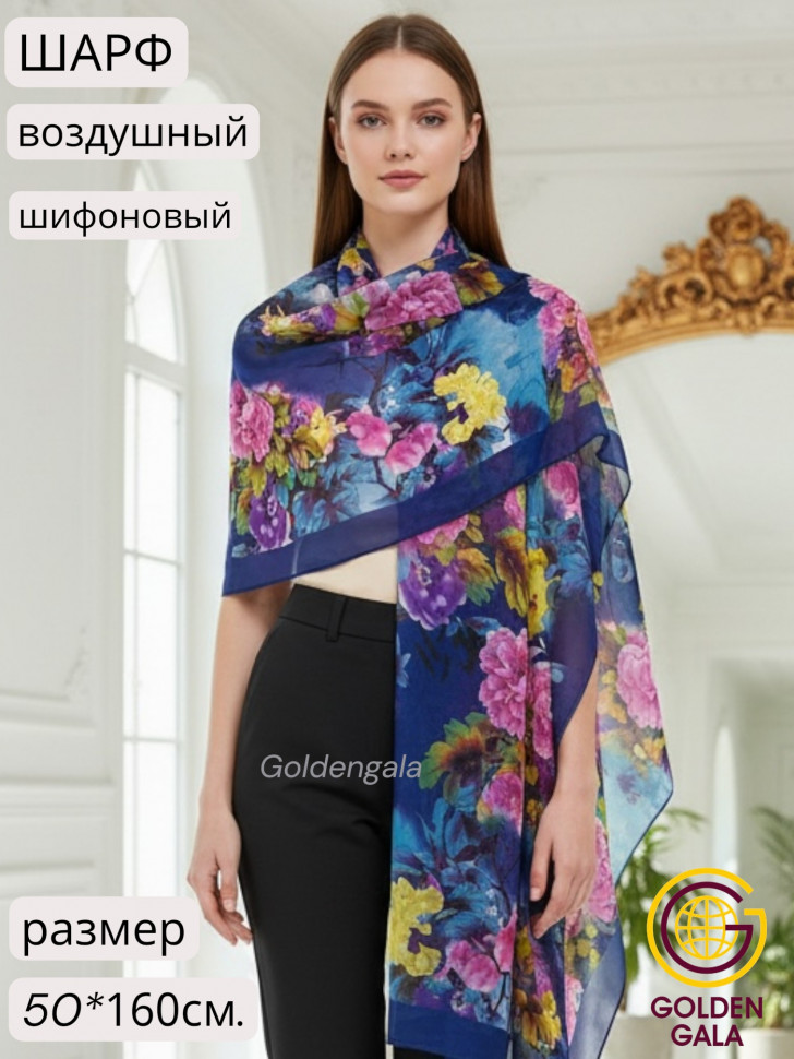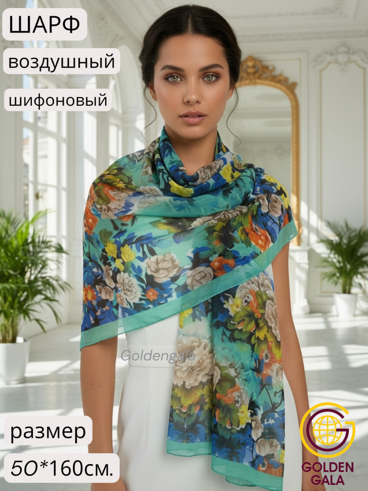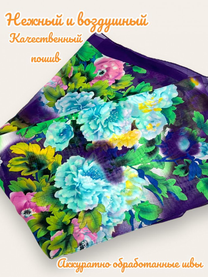 Шарф шифоновый с цветочным принтом Арт 0981/7 10 фото