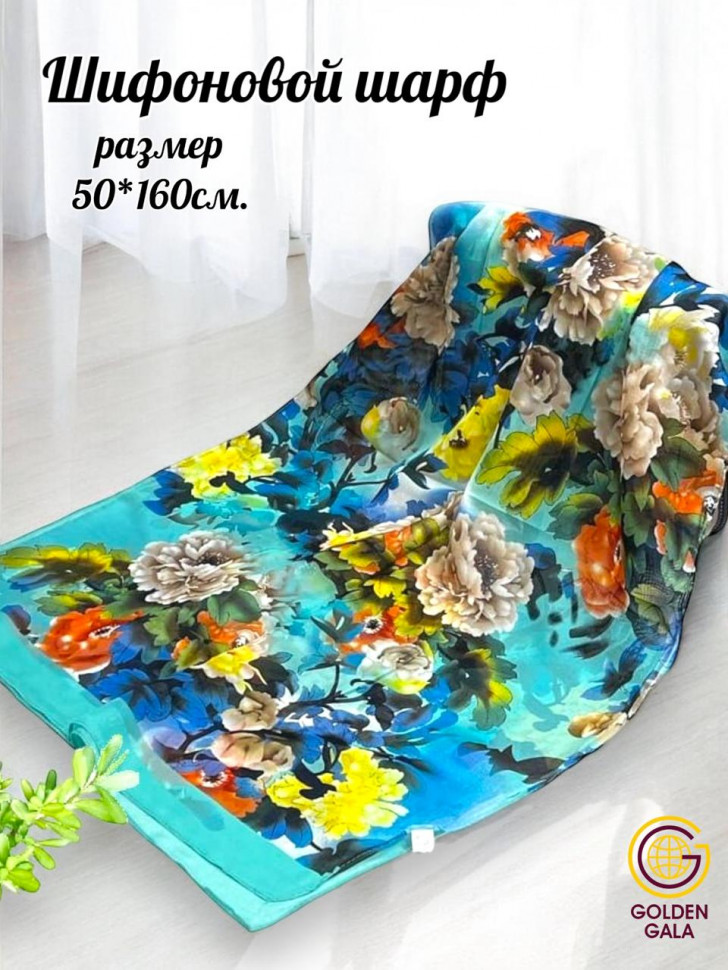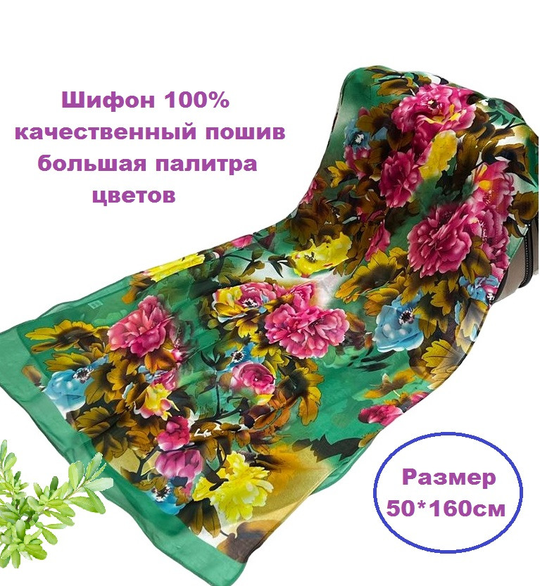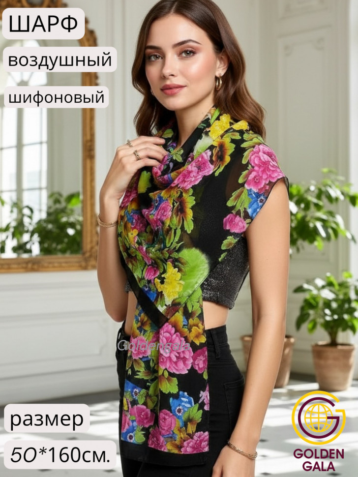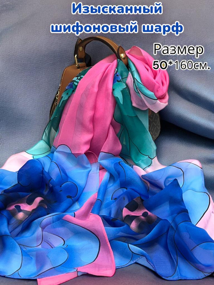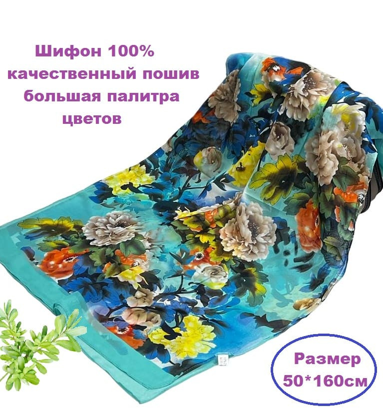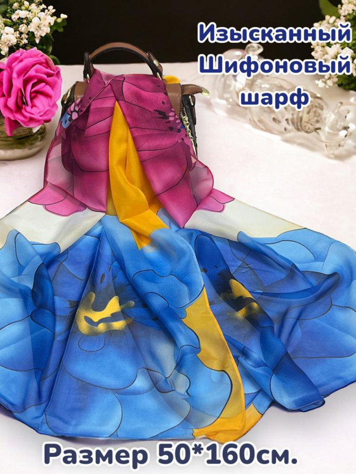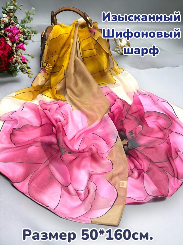 Шарф шифоновый с цветочным рисунком 3D Арт М52/6 10 фото
