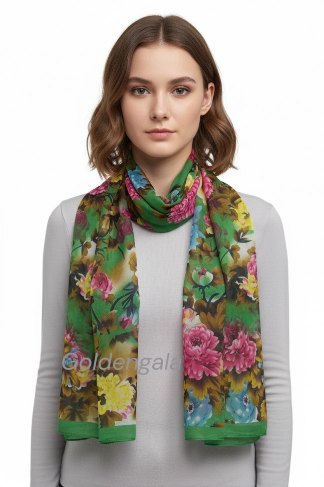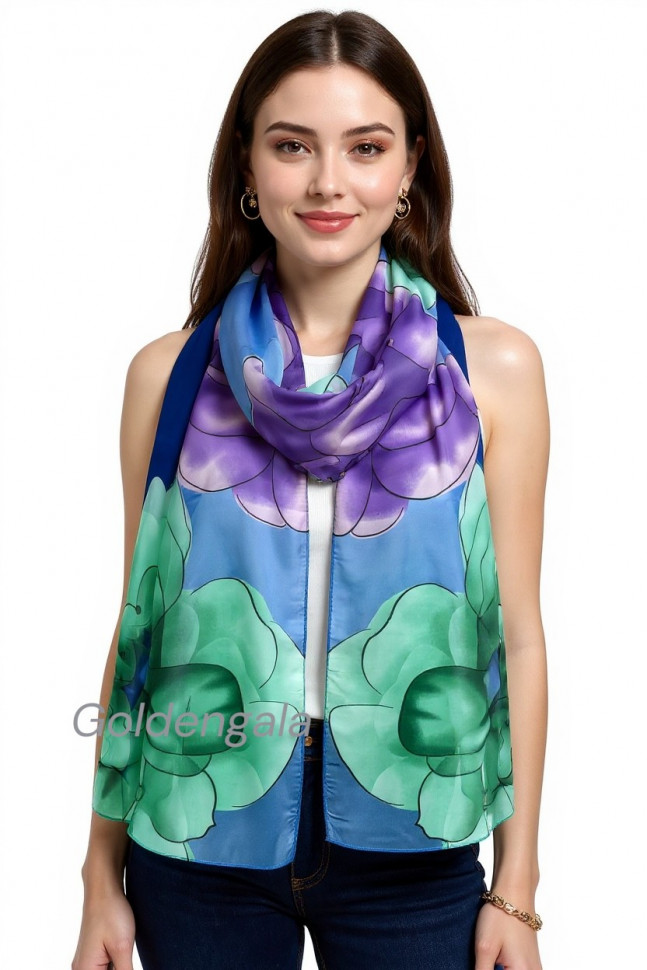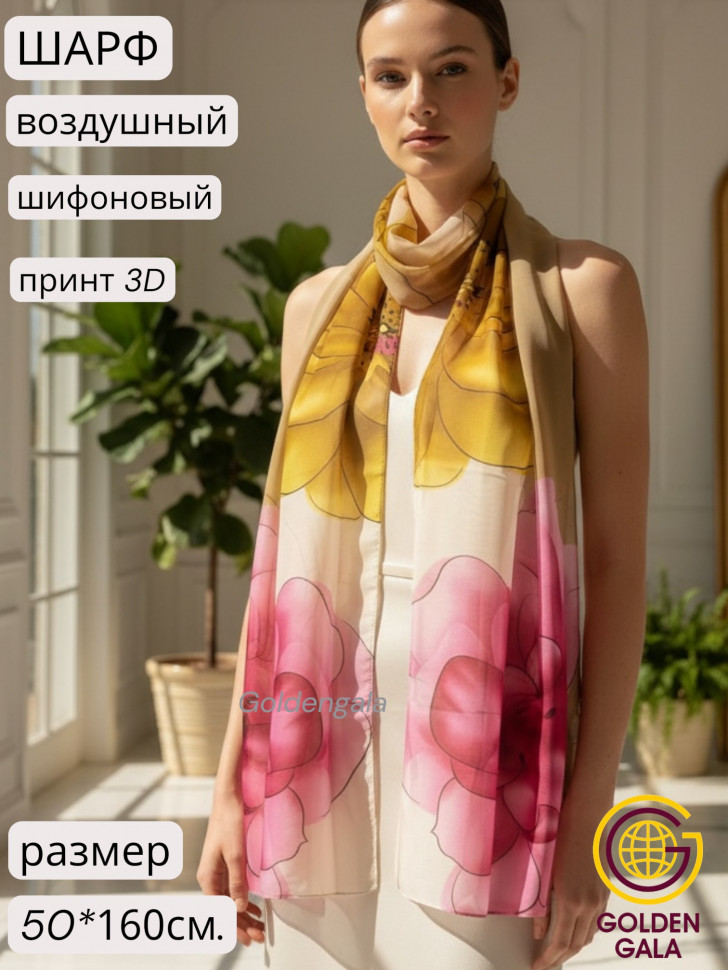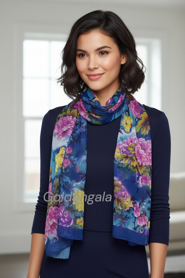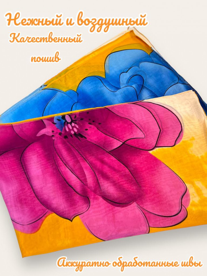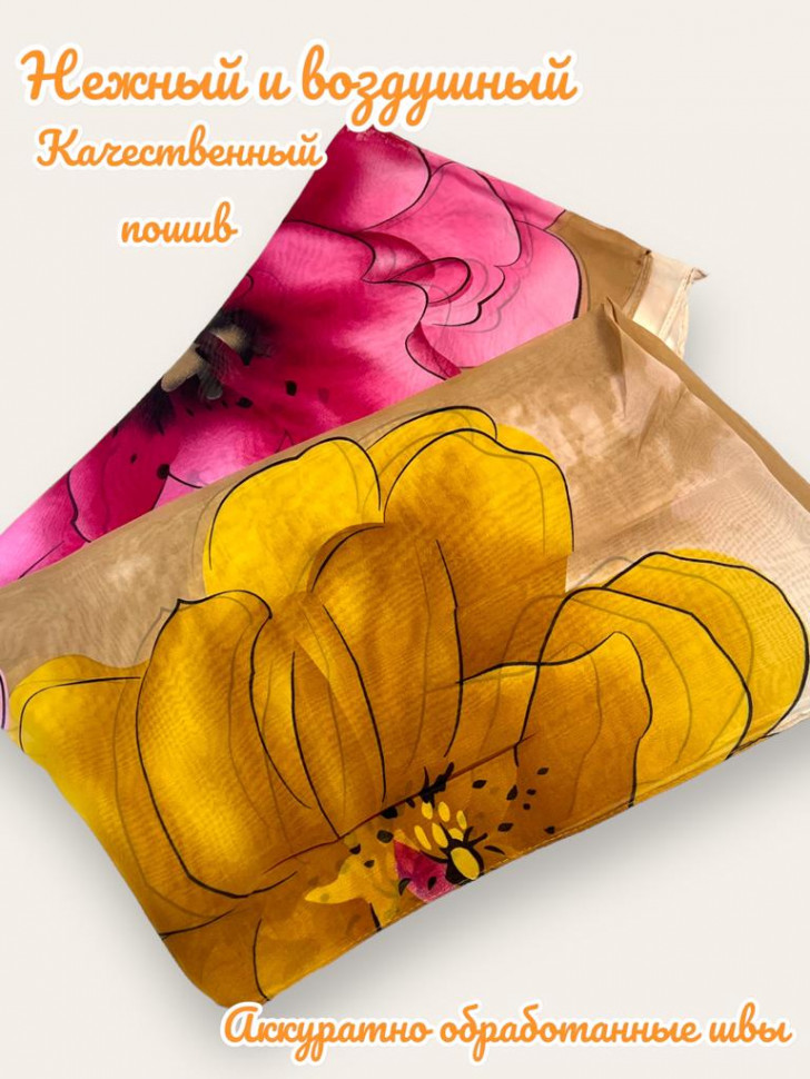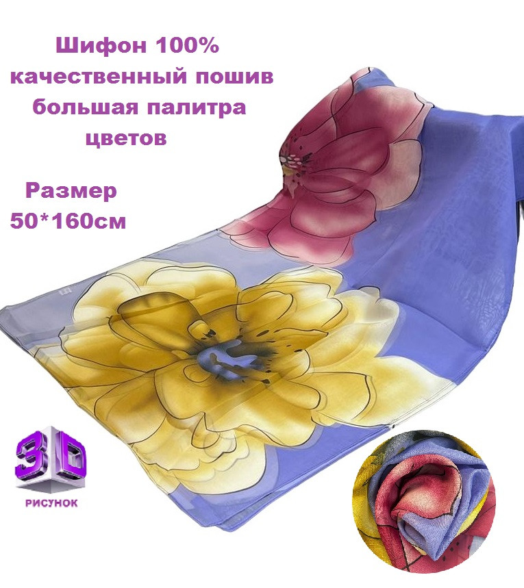 Шарф шифоновый с цветочным рисунком 3D Арт М52/4 10 фото