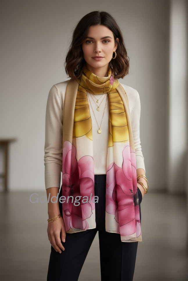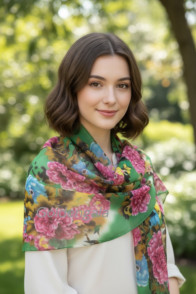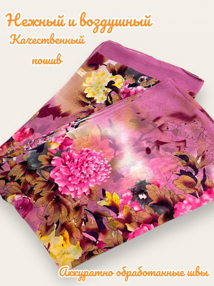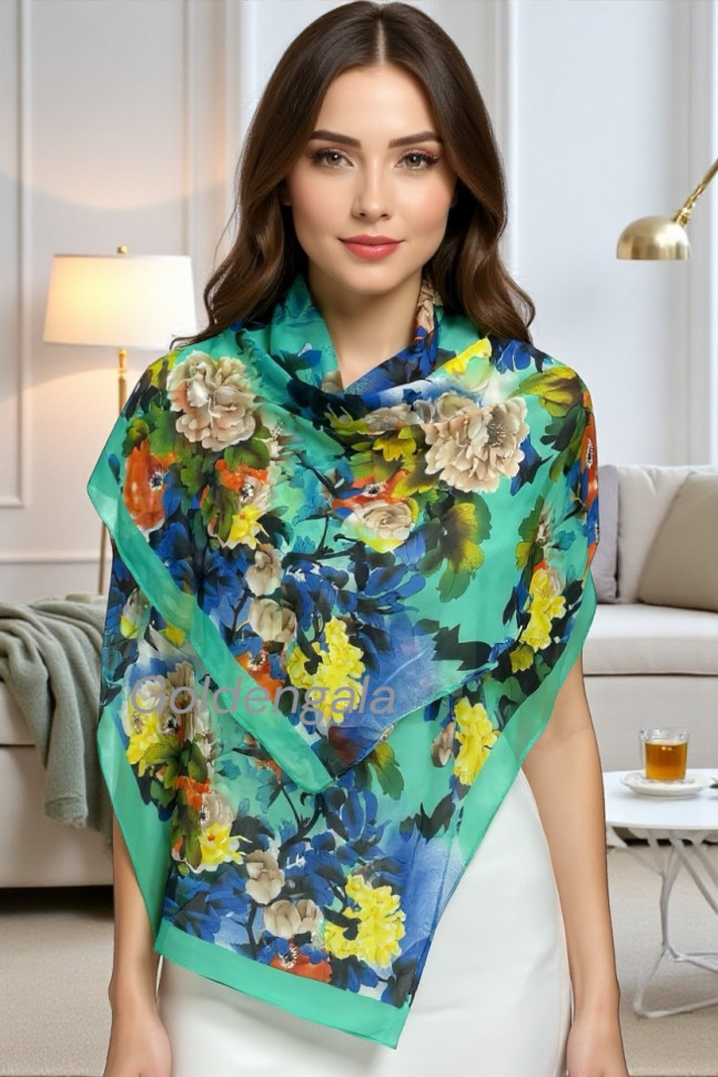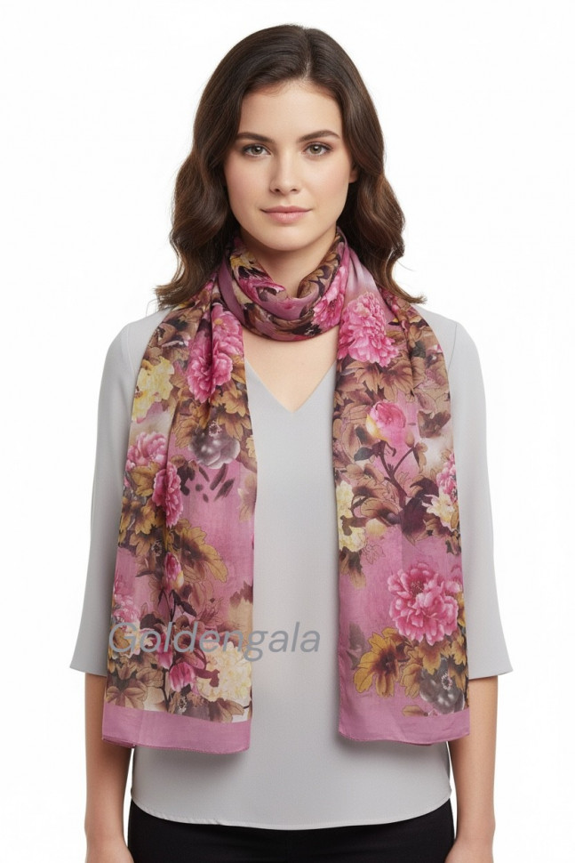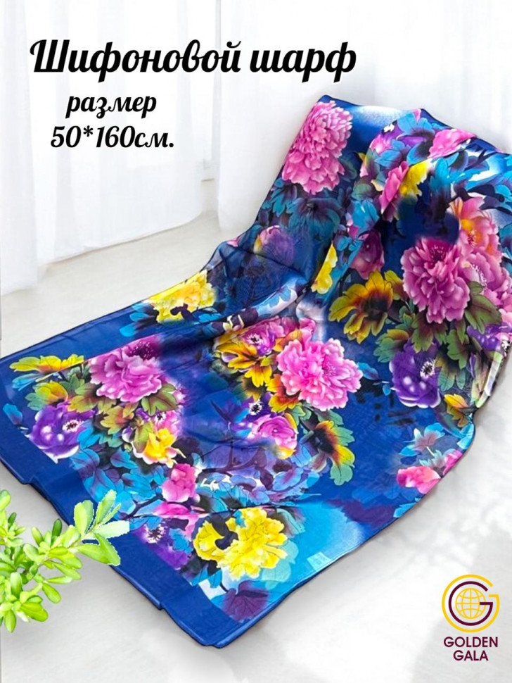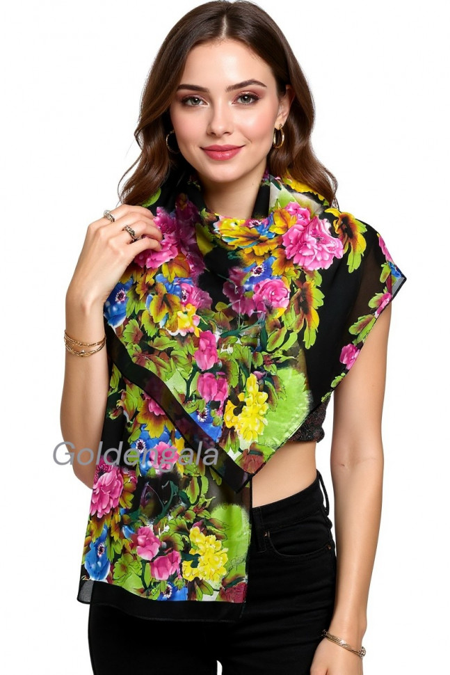 Шарф шифоновый с цветочным рисунком 3D Арт М52/4 10 фото