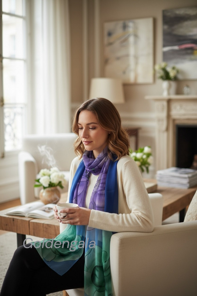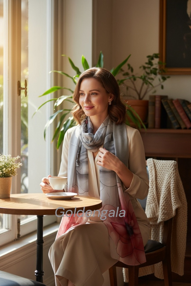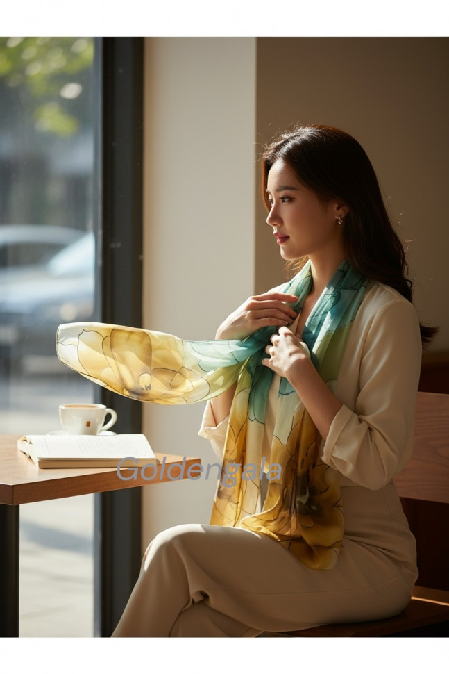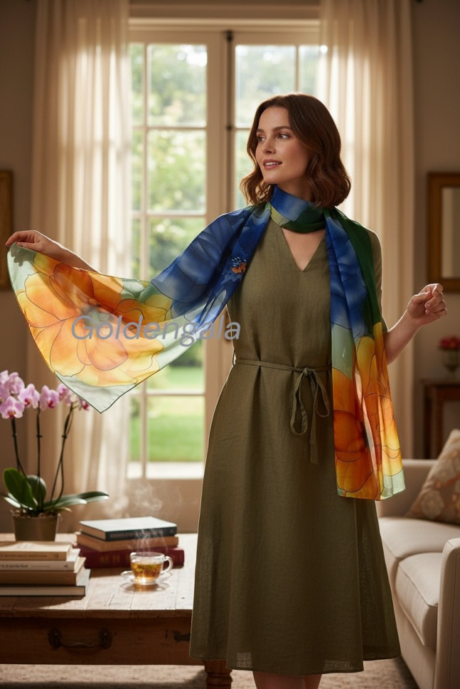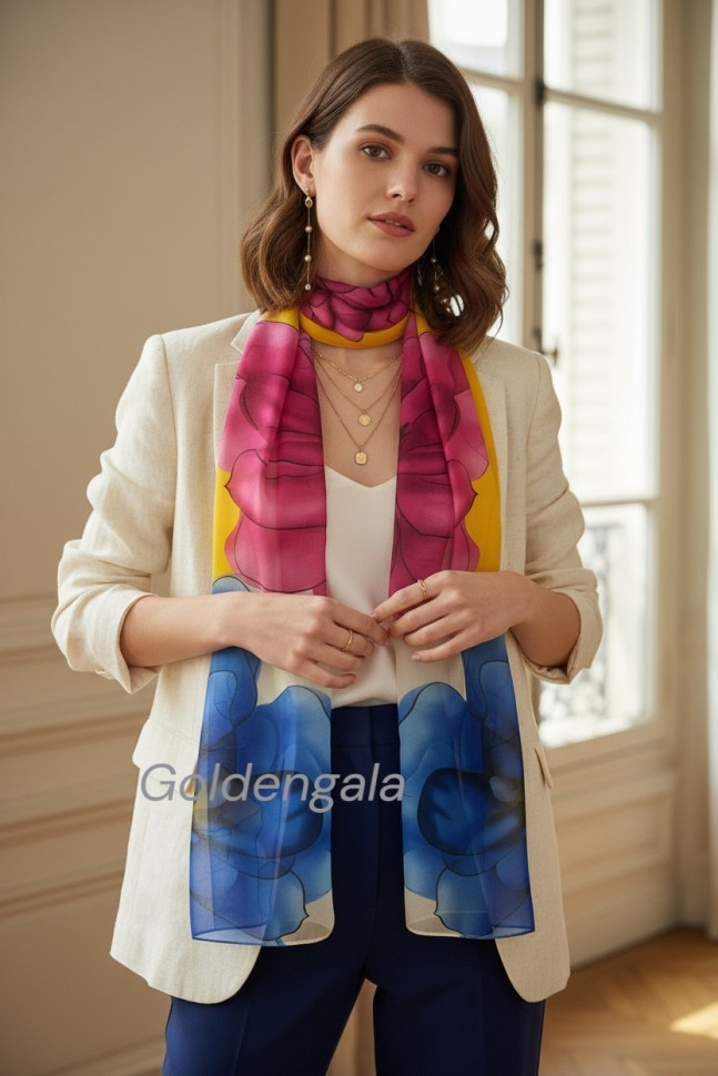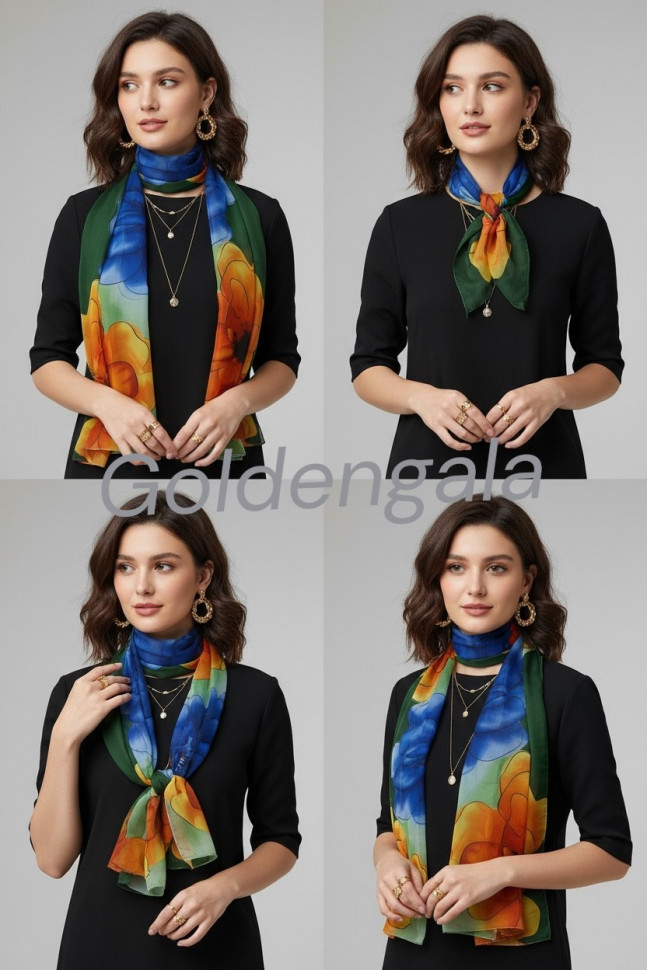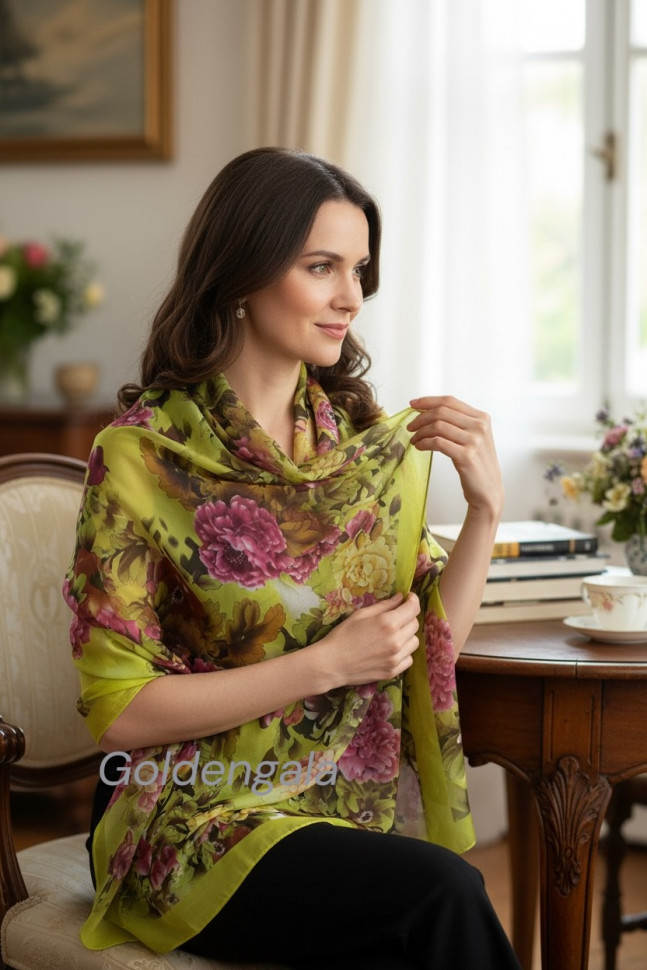Шарф шифоновый с цветочным рисунком 3D Арт М52/4 10 фото