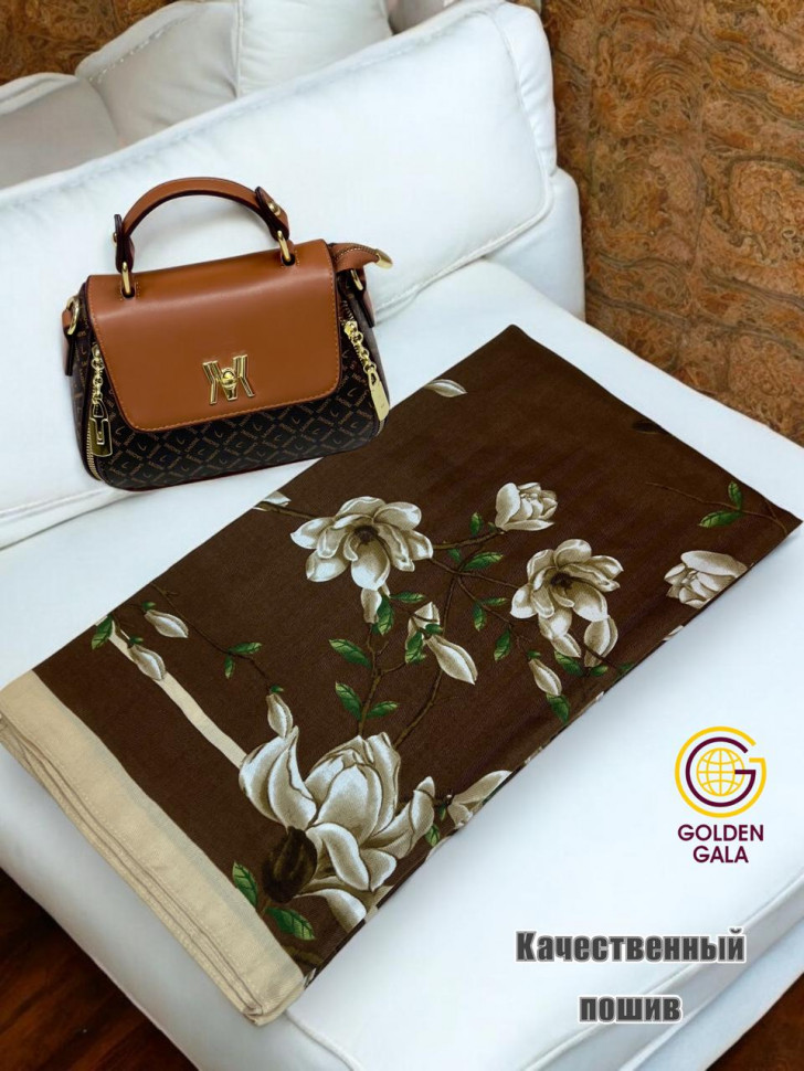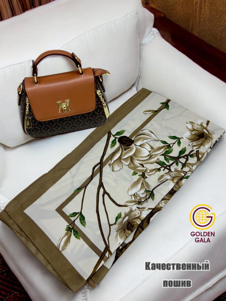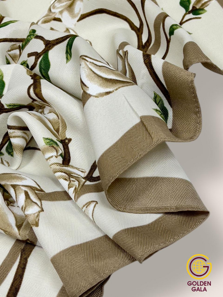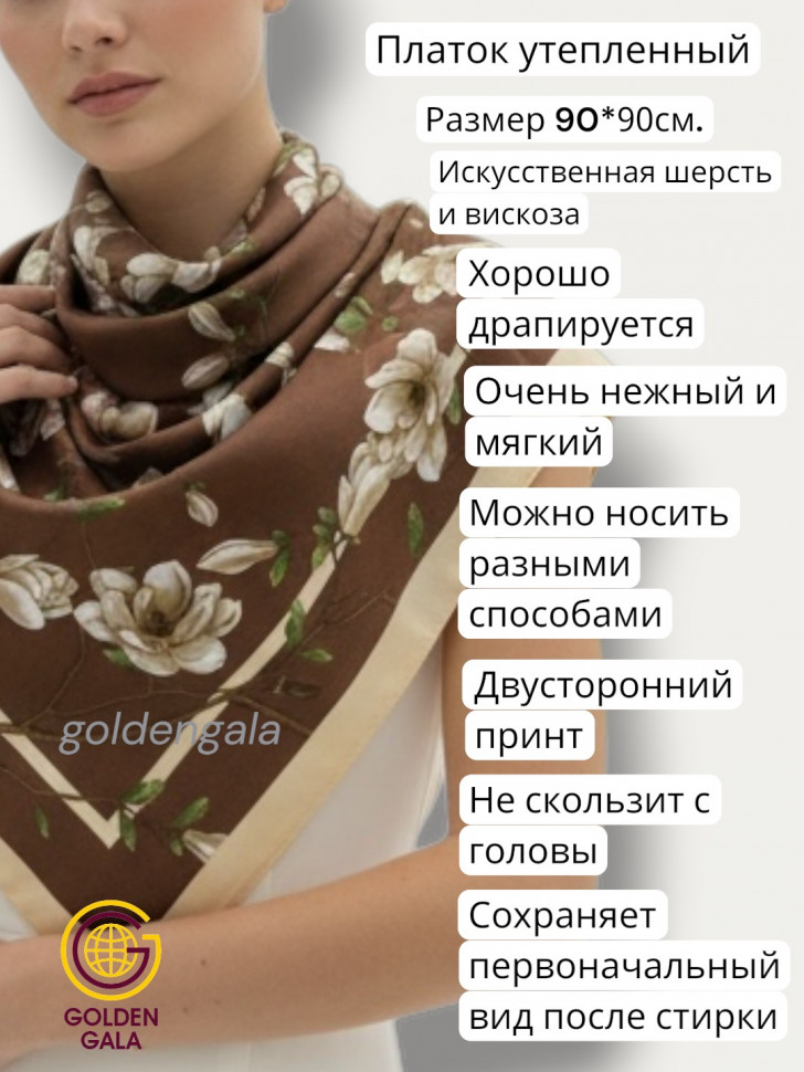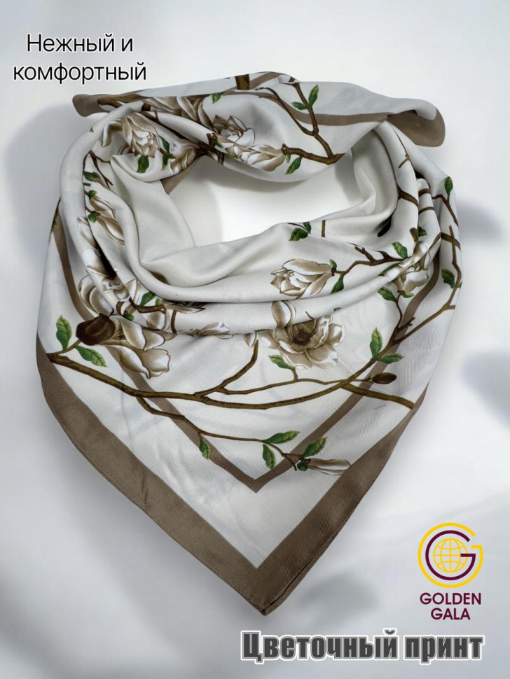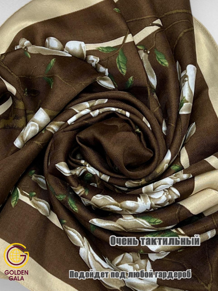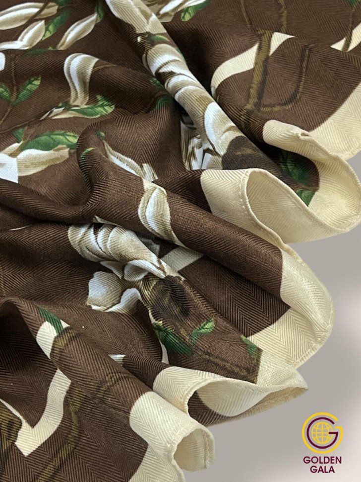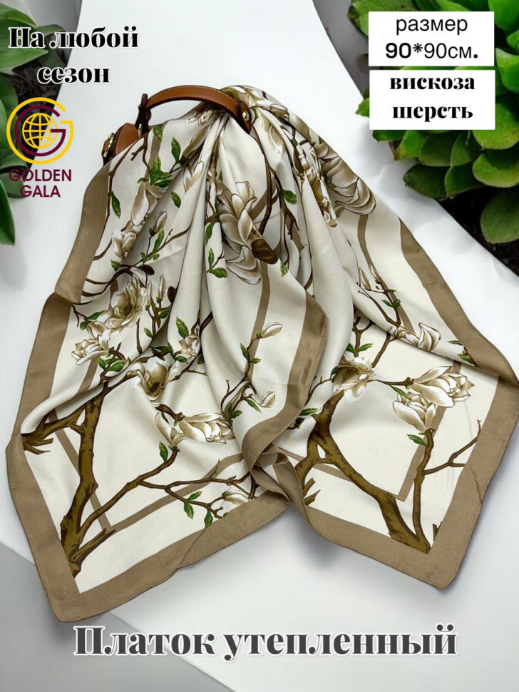 Платок утепленный Сакура цвет 3040/2 (коричневый с бежевым) 10 фото