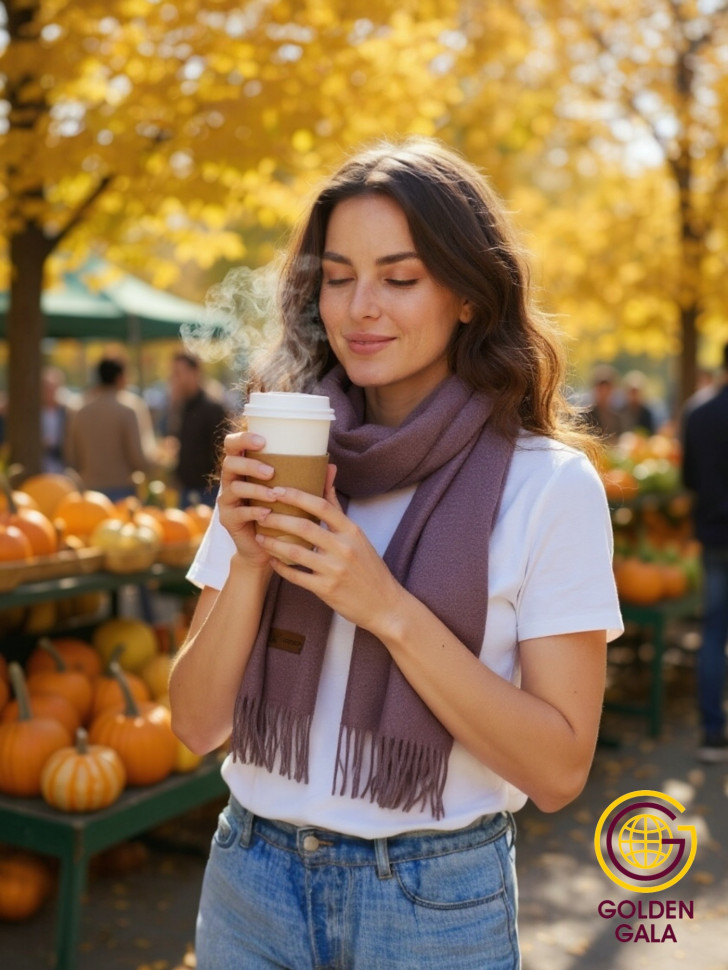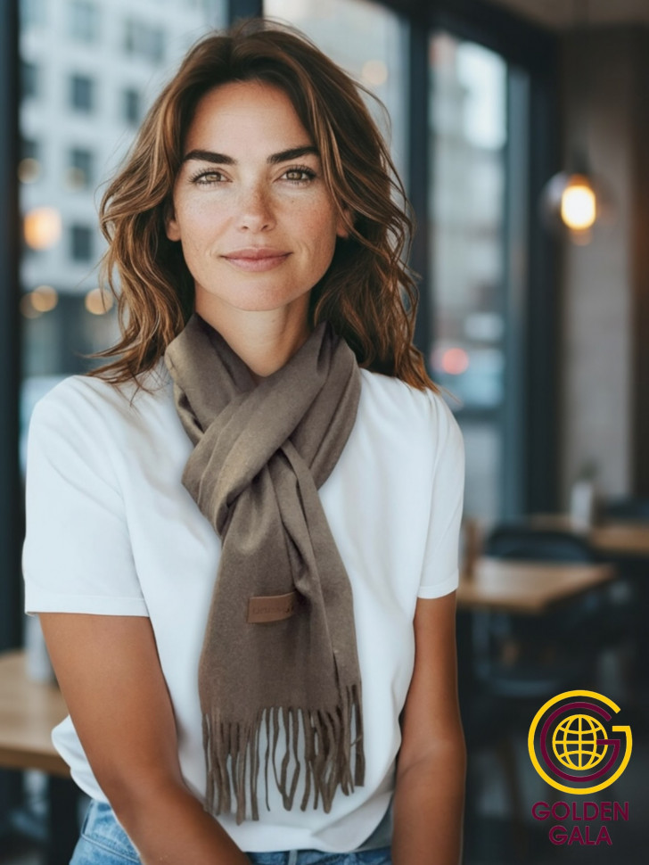 Шарф теплый женский кашемировый Арт 2581Ш/11 (коричневый текстурный) 10 фото