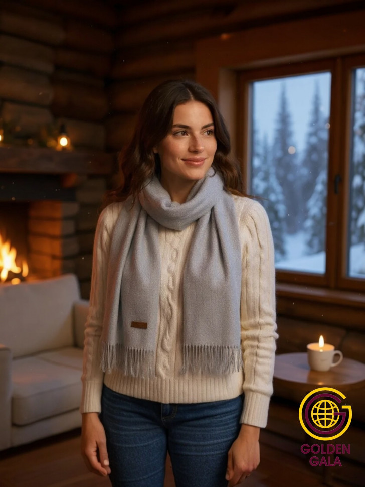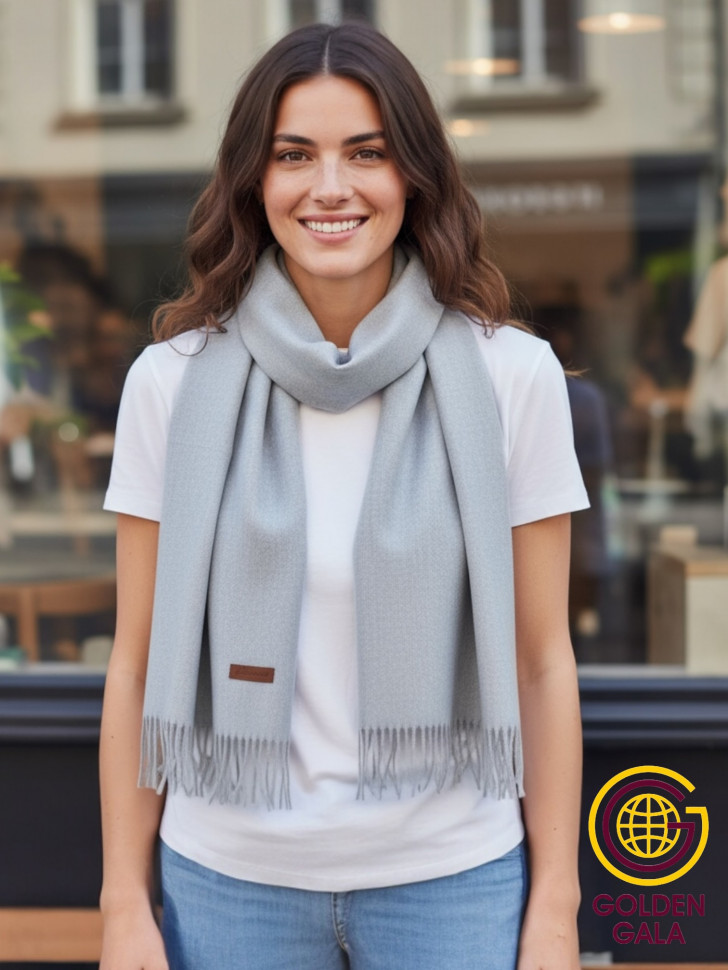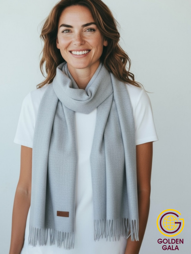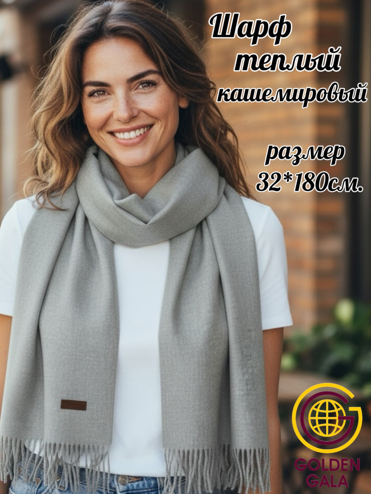 Шарф теплый женский кашемировый Арт 2581Ш/02 (светло-серый) 10 фото