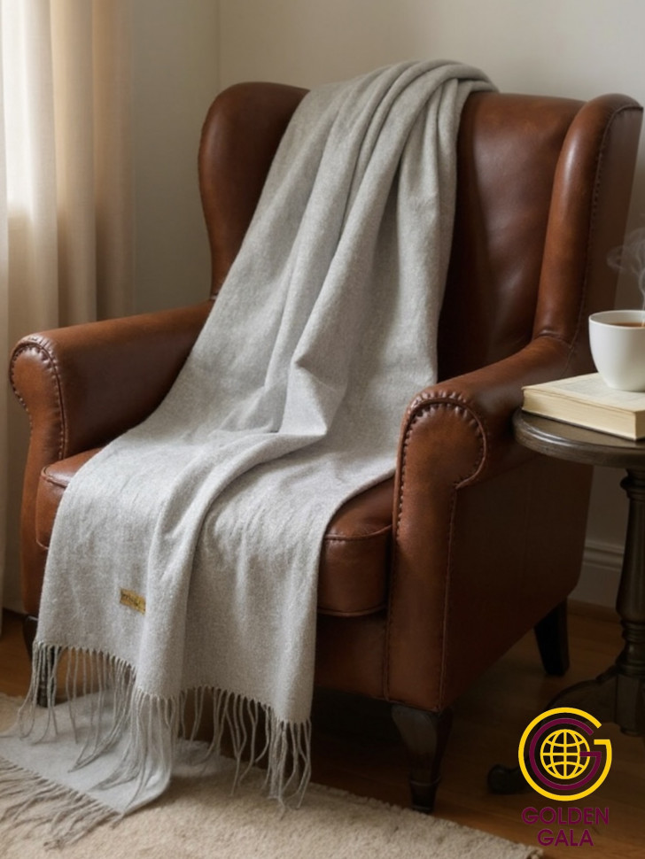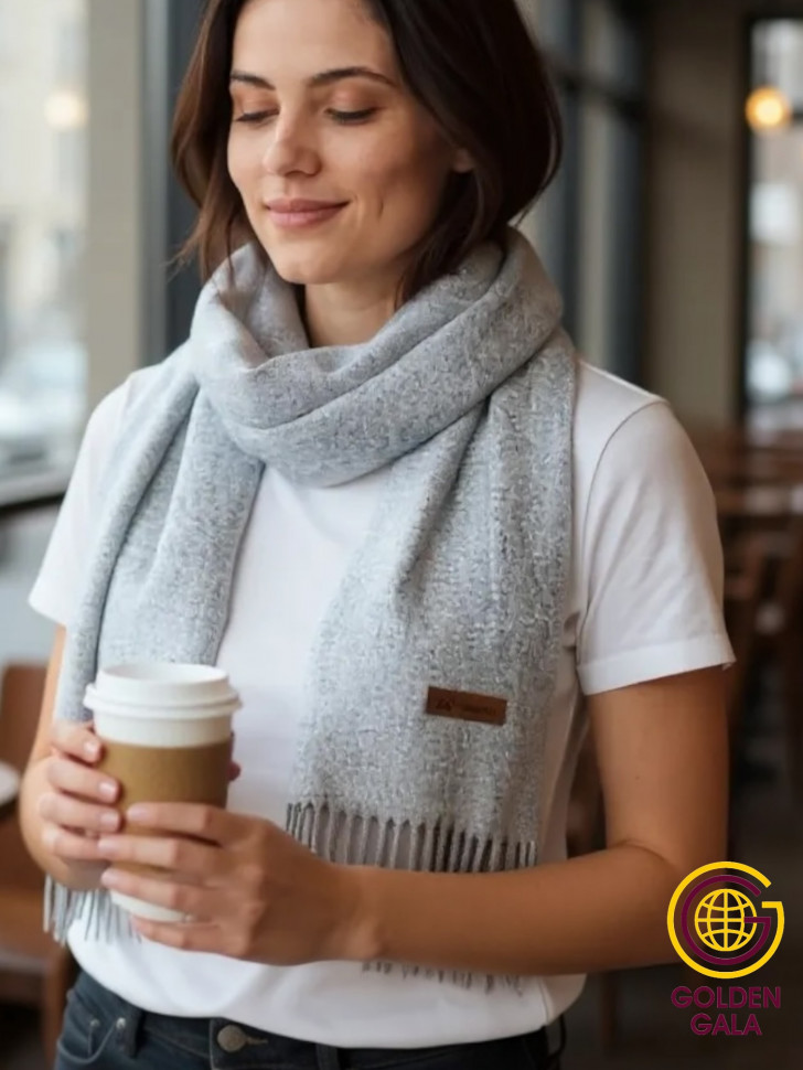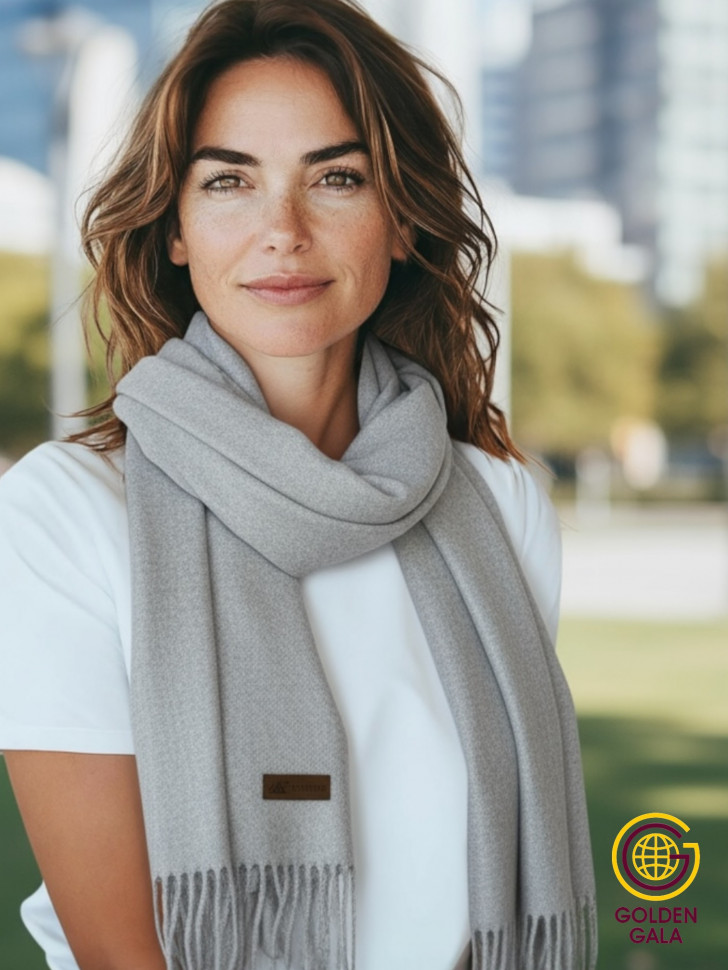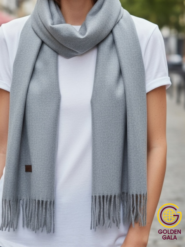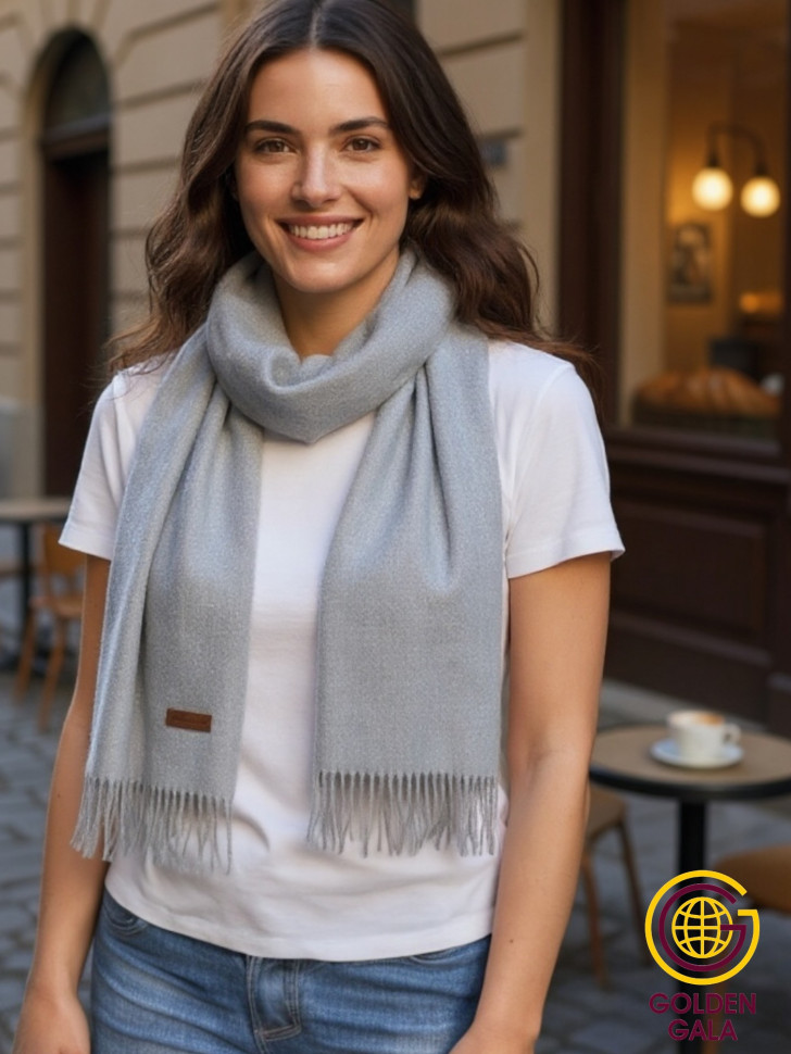 Шарф теплый женский кашемировый Арт 2581Ш/02 (светло-серый) 10 фото