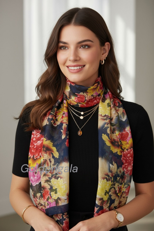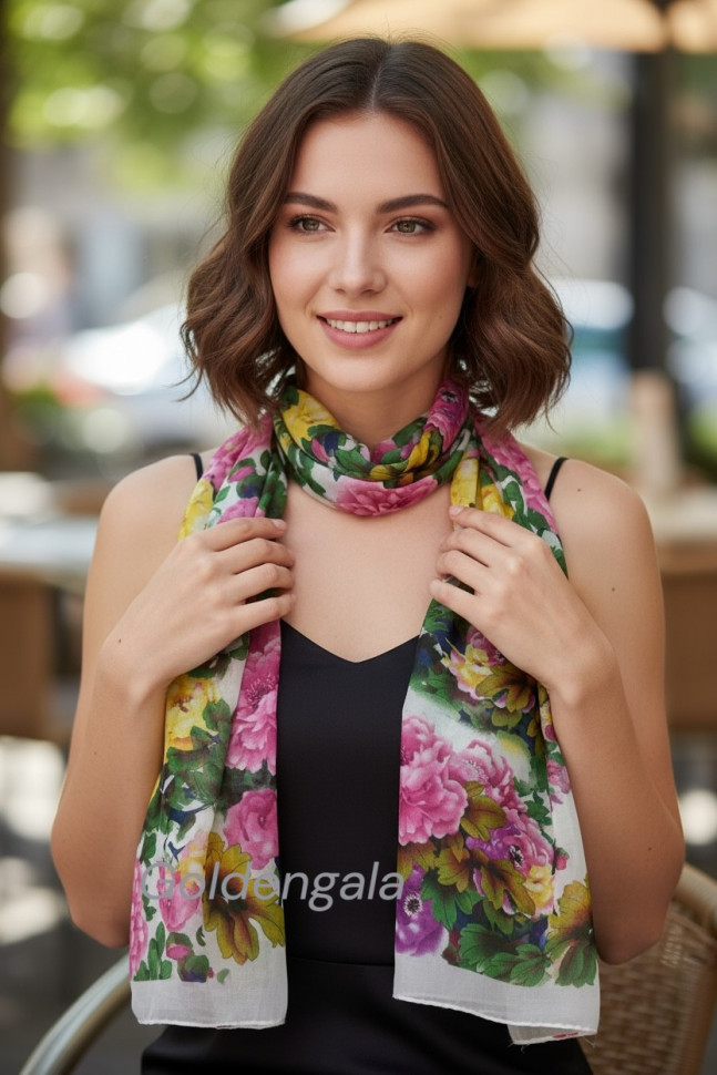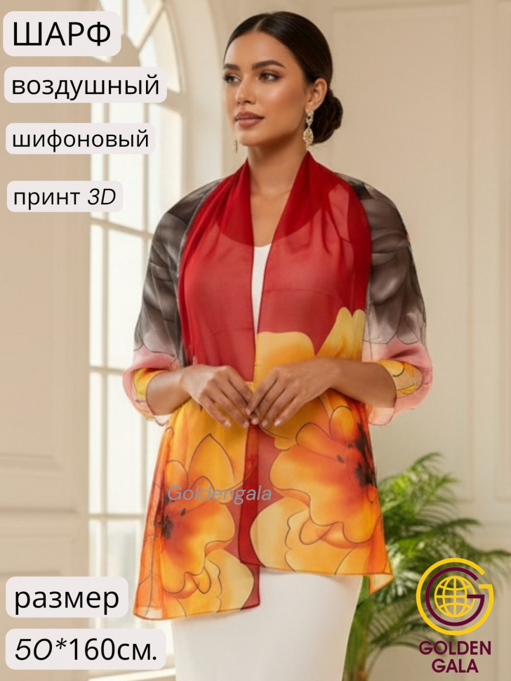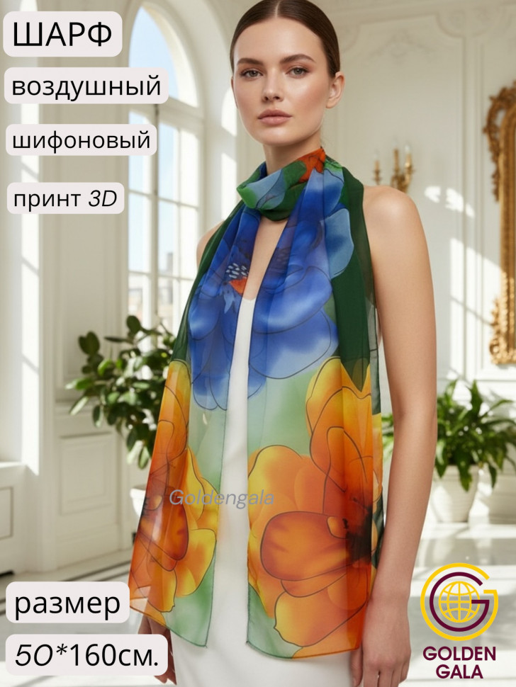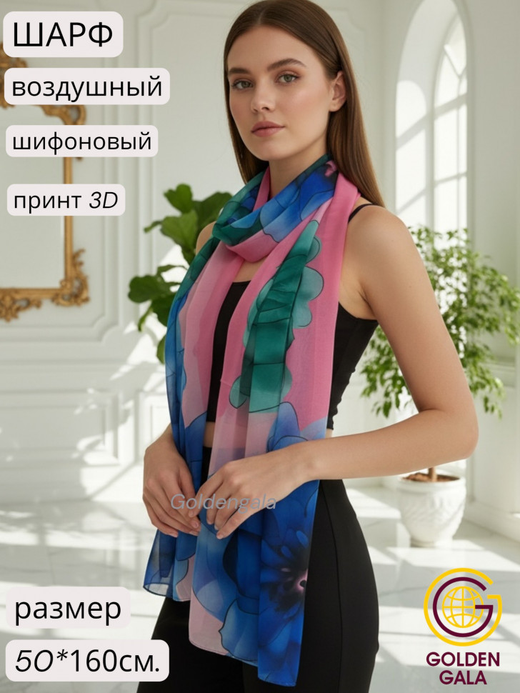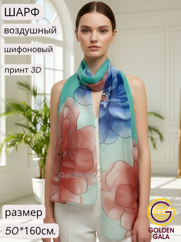 Шарф шифоновый с цветочным рисунком 3D Арт М52/8 10 фото