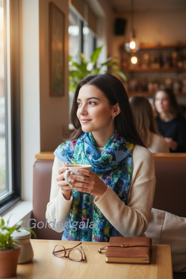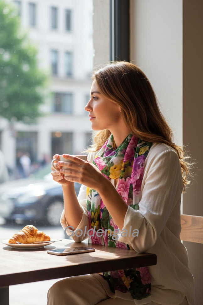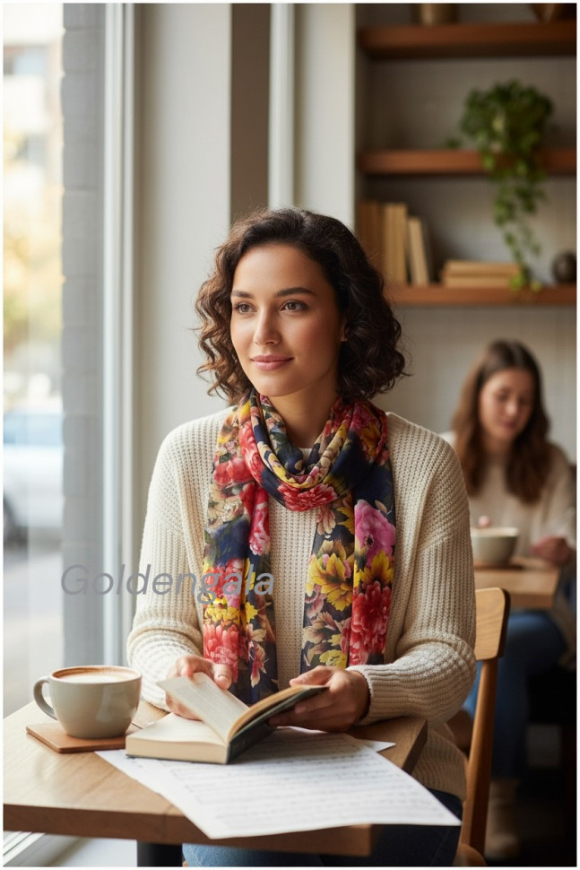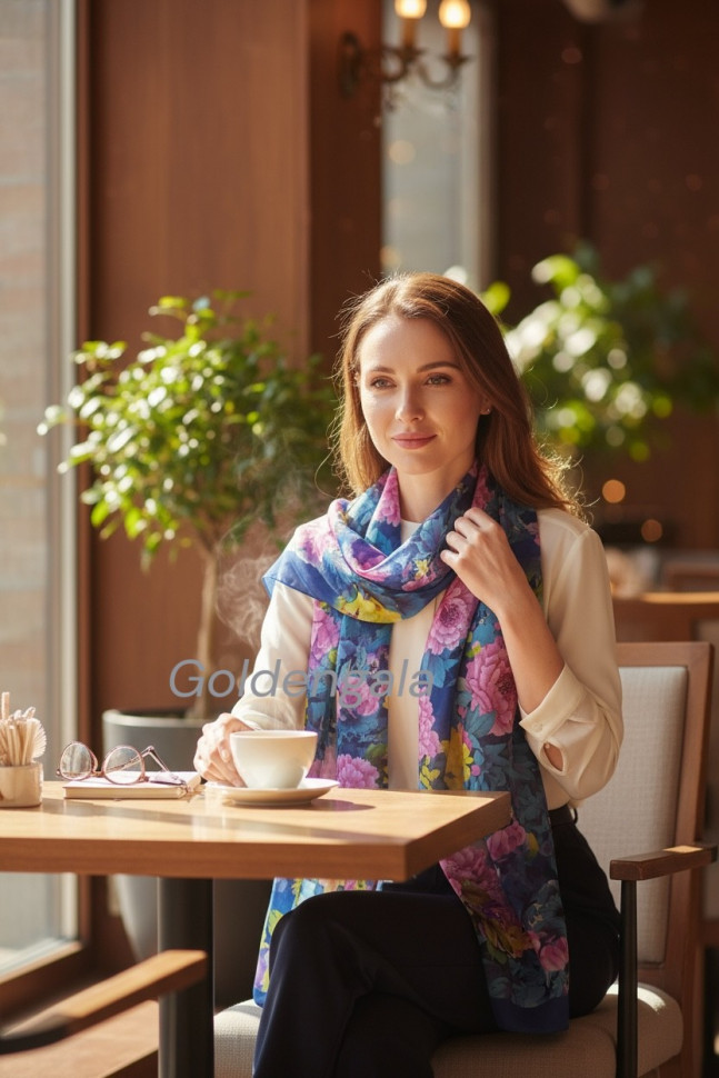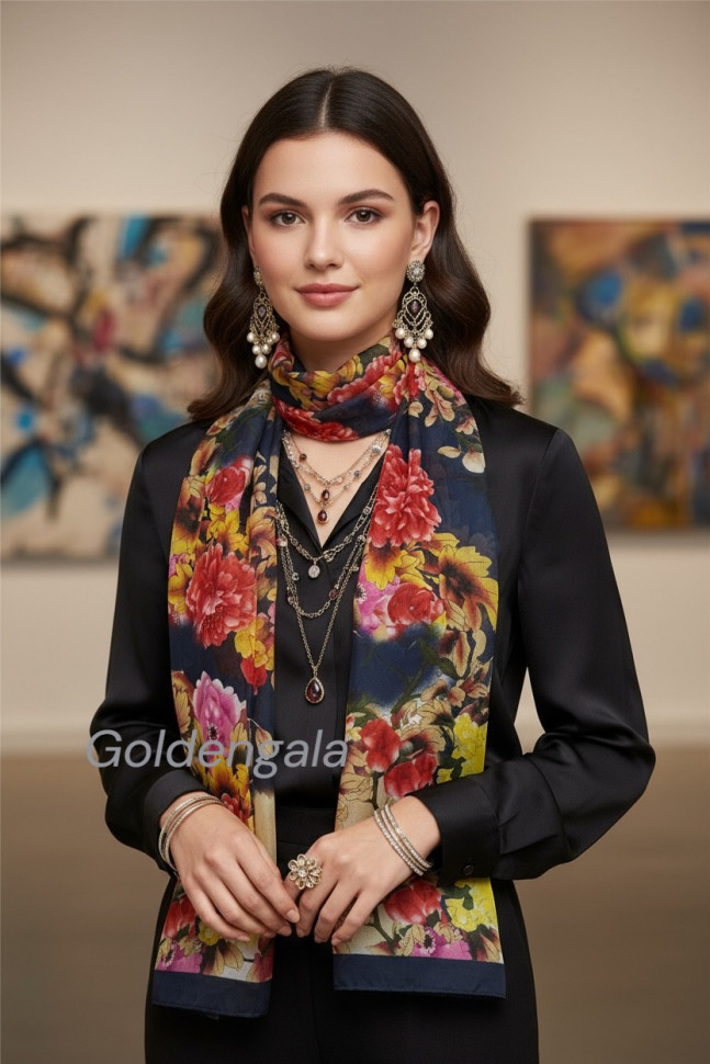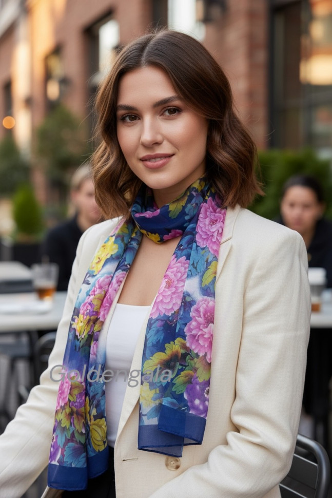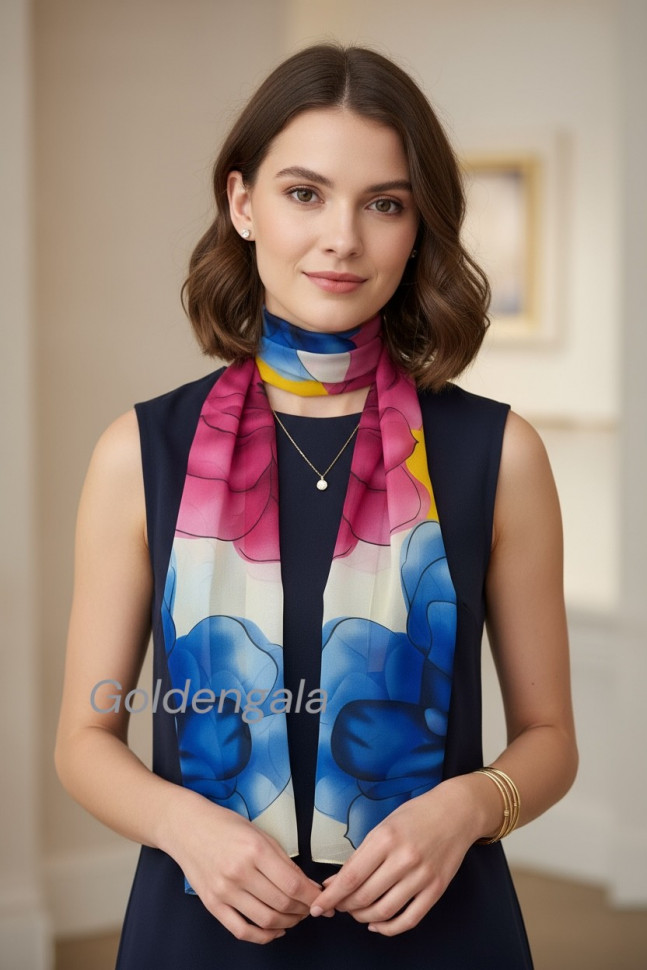 Шарф шифоновый с цветочным рисунком 3D Арт М52/8 10 фото