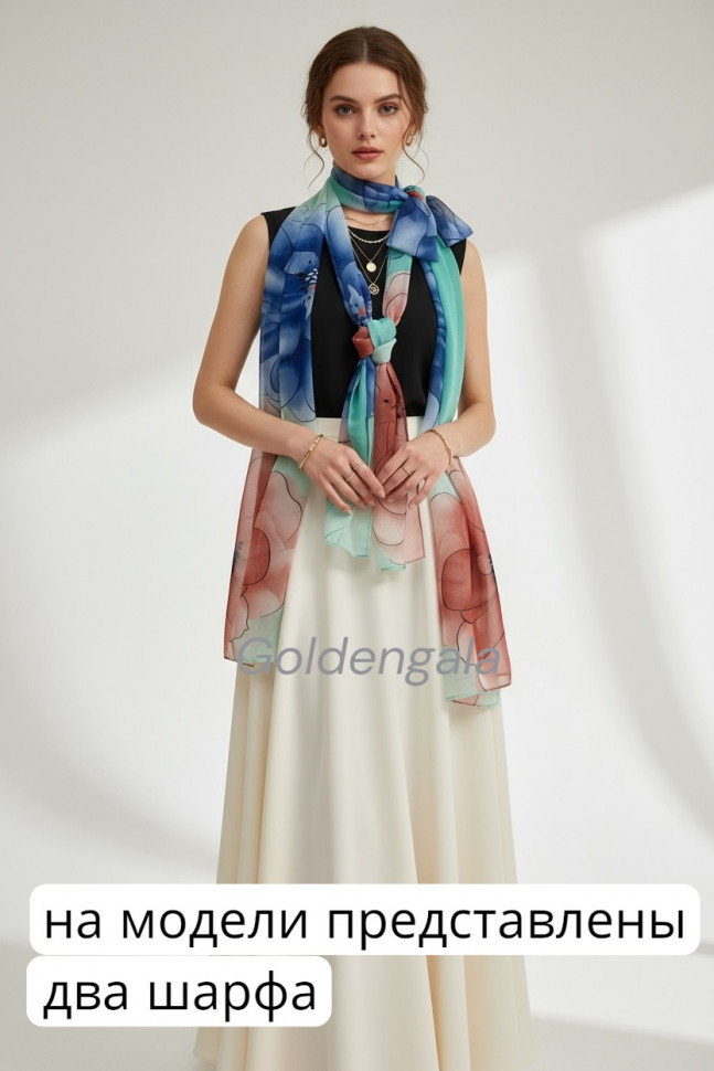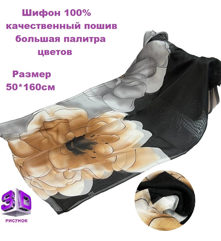 Шарф шифоновый с цветочным рисунком 3D Арт М52/1 10 фото