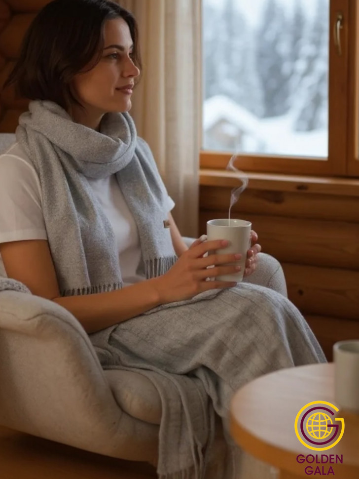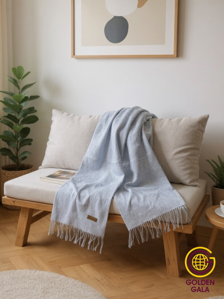 Шарф теплый женский кашемировый Арт 2581Ш/03 (серо-голубой) 10 фото