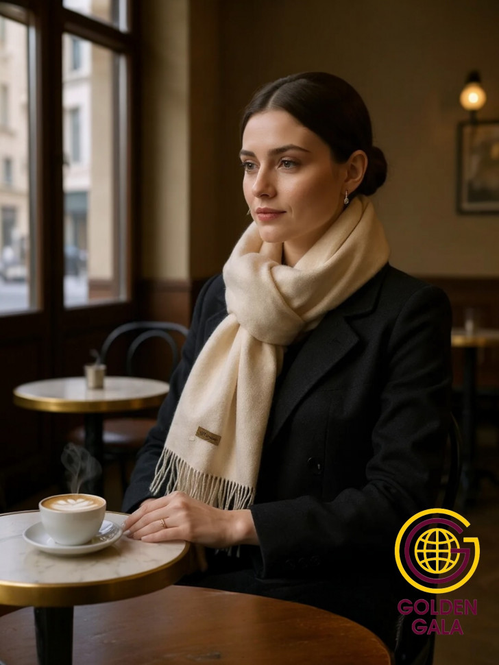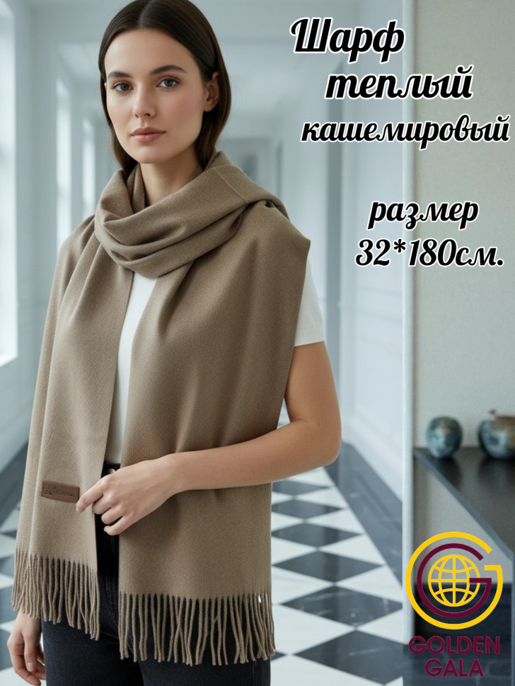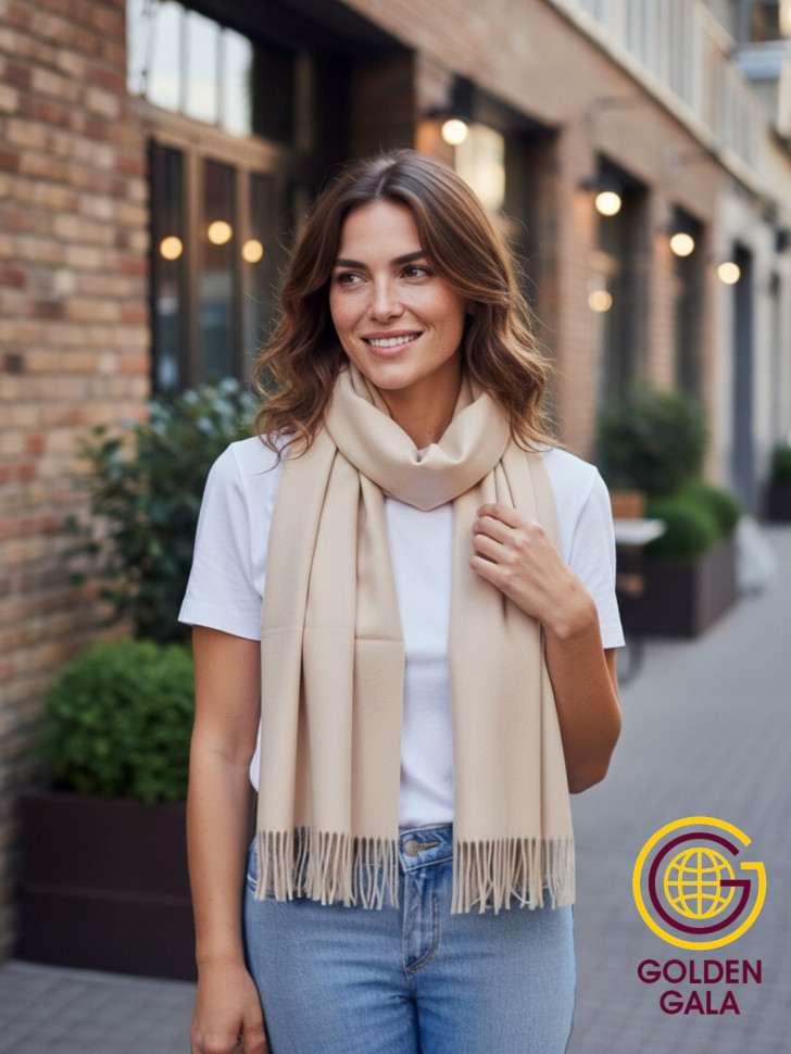 Шарф теплый женский кашемировый Арт 2581Ш/12 (светло-бежевый) 10 фото
