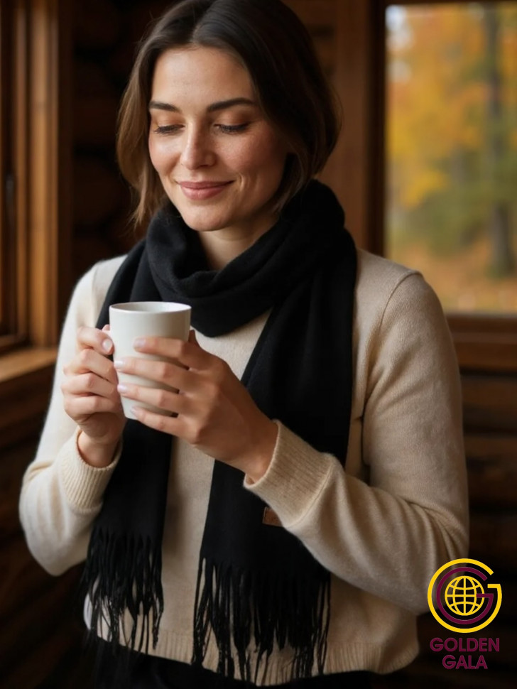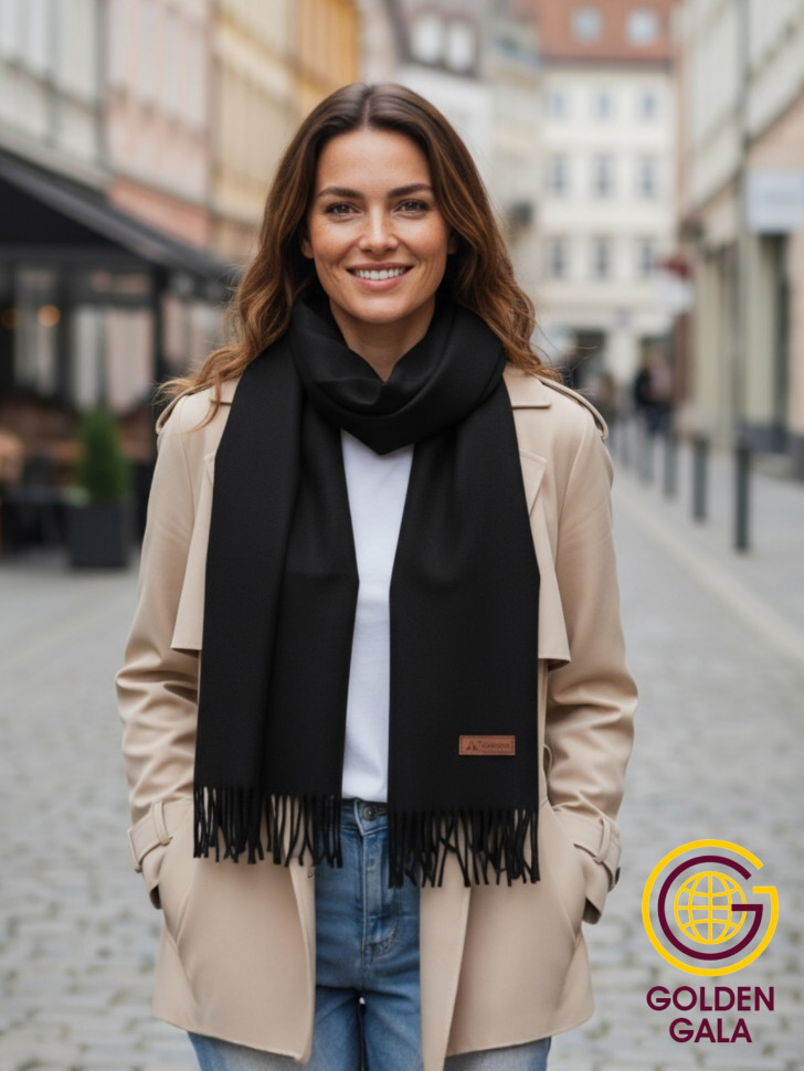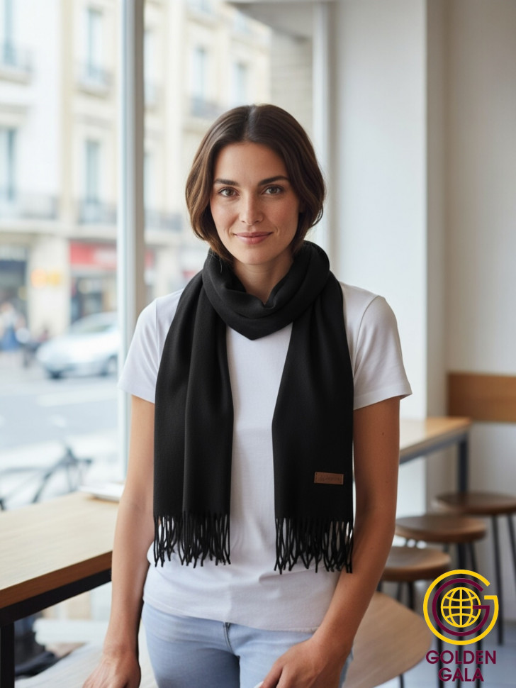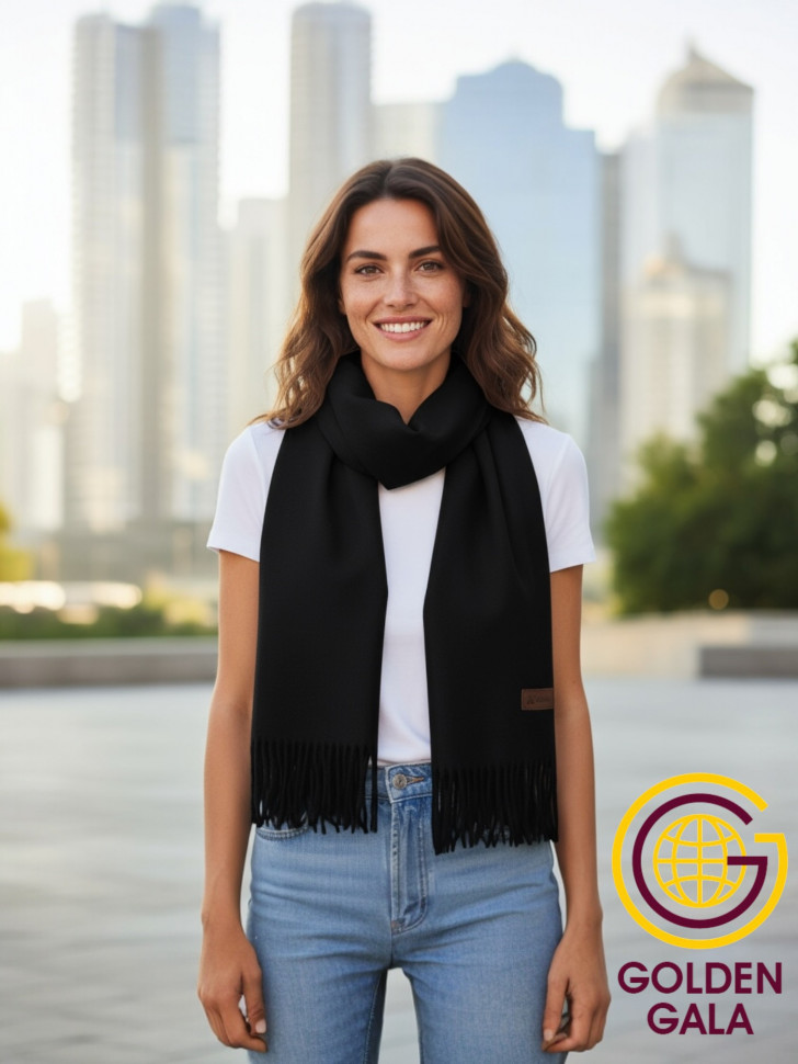 Шарф теплый женский кашемировый Арт 2581Ш/08 (черный) 10 фото