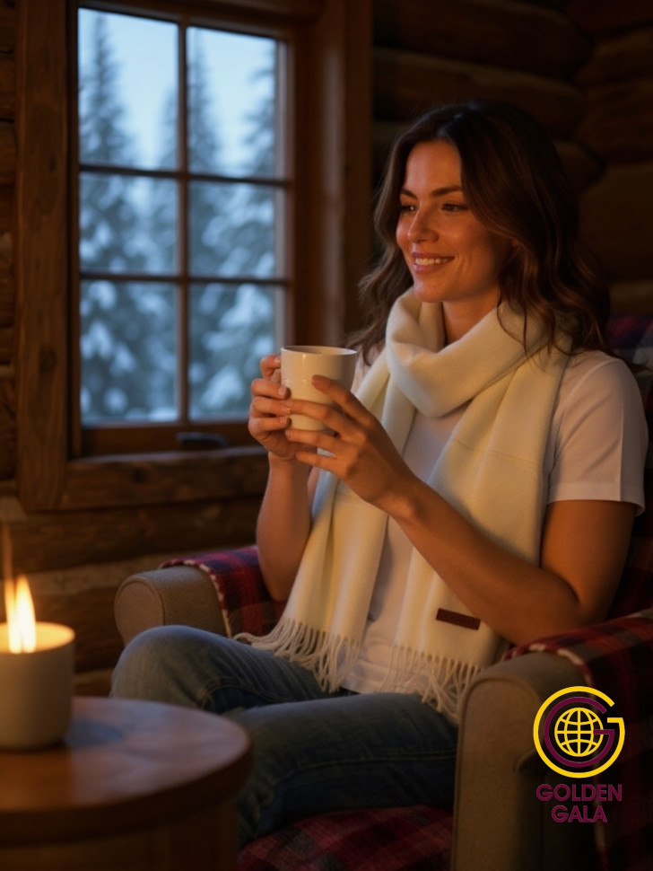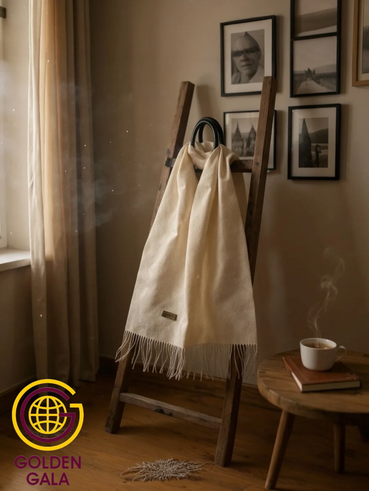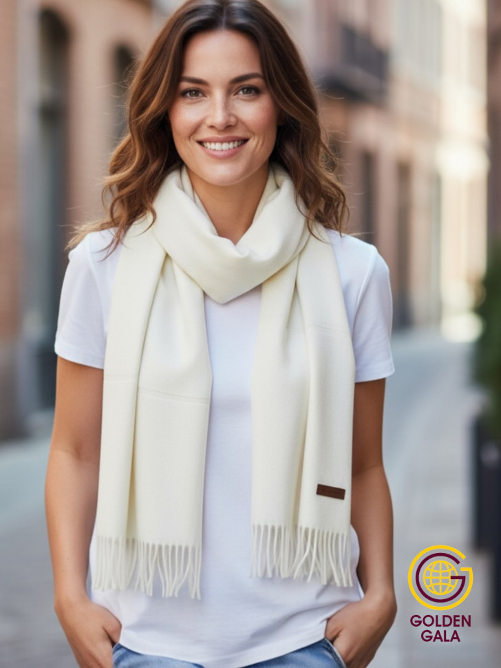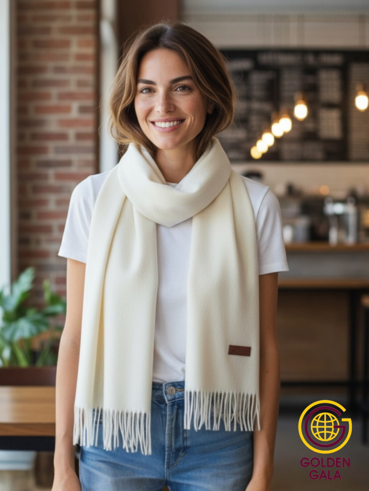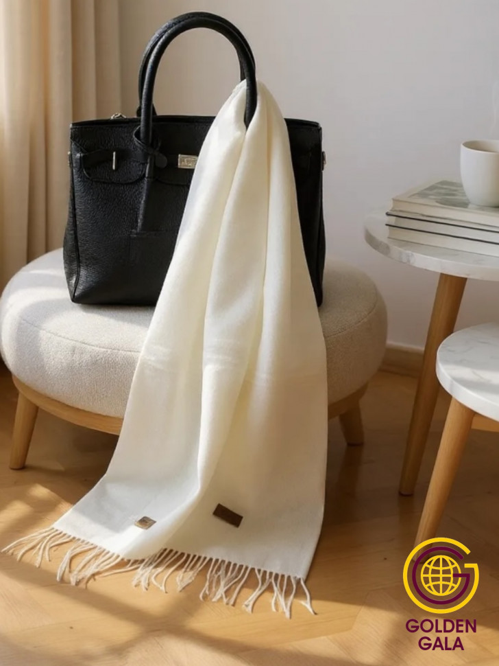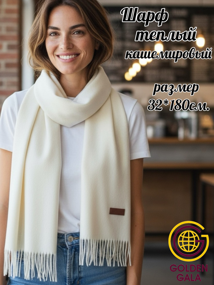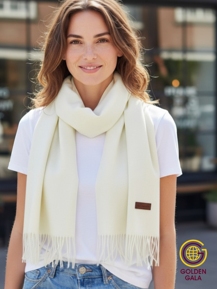 Шарф теплый женский кашемировый Арт 2581Ш/05 (молочный) 10 фото