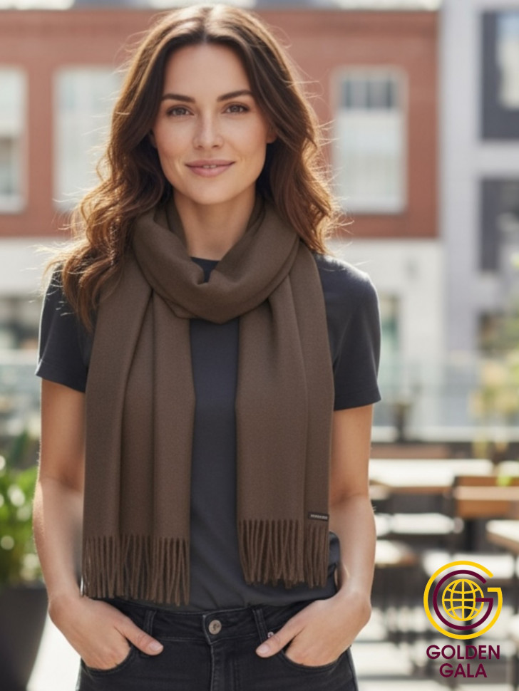 Шарф теплый женский кашемировый Арт 2581Ш/01 (темно-коричневый) 10 фото