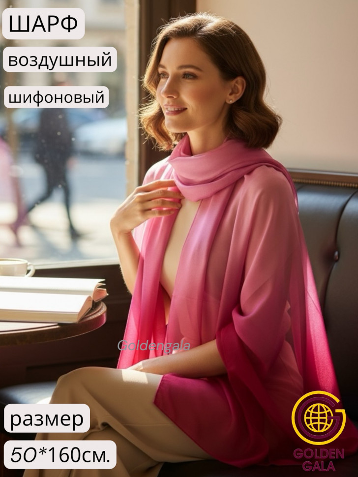 Шарф шифоновый однотонный Арт 0984/6 6 фото