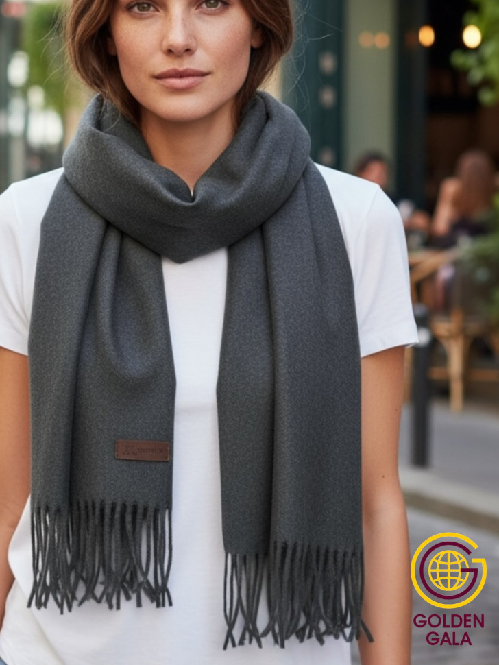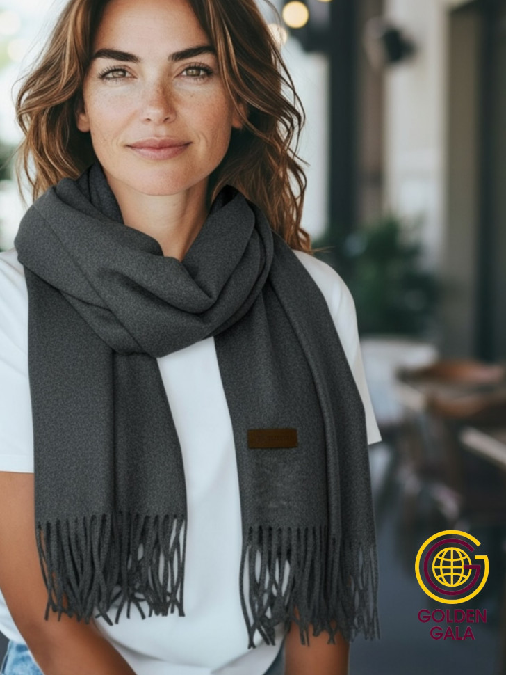 Шарф теплый женский кашемировый Арт 2581Ш/06 (темно-серый) 10 фото