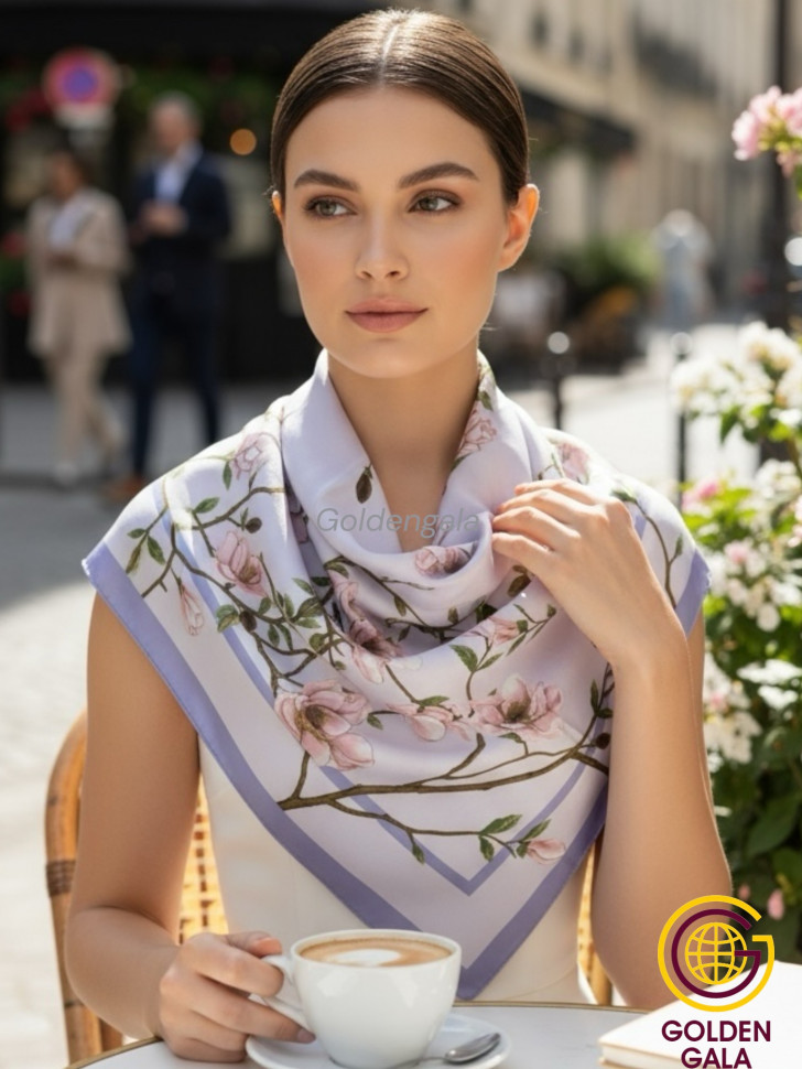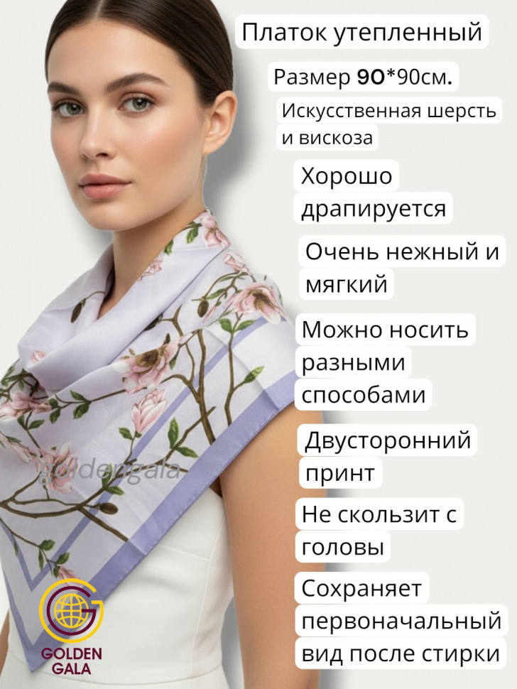 Платок утепленный Сакура цвет 3040/3 (сиреневый) 10 фото