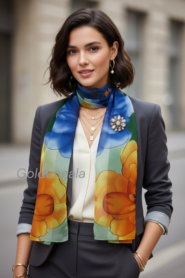 Шарф шифоновый с цветочным рисунком 3D Арт М52/3 10 фото