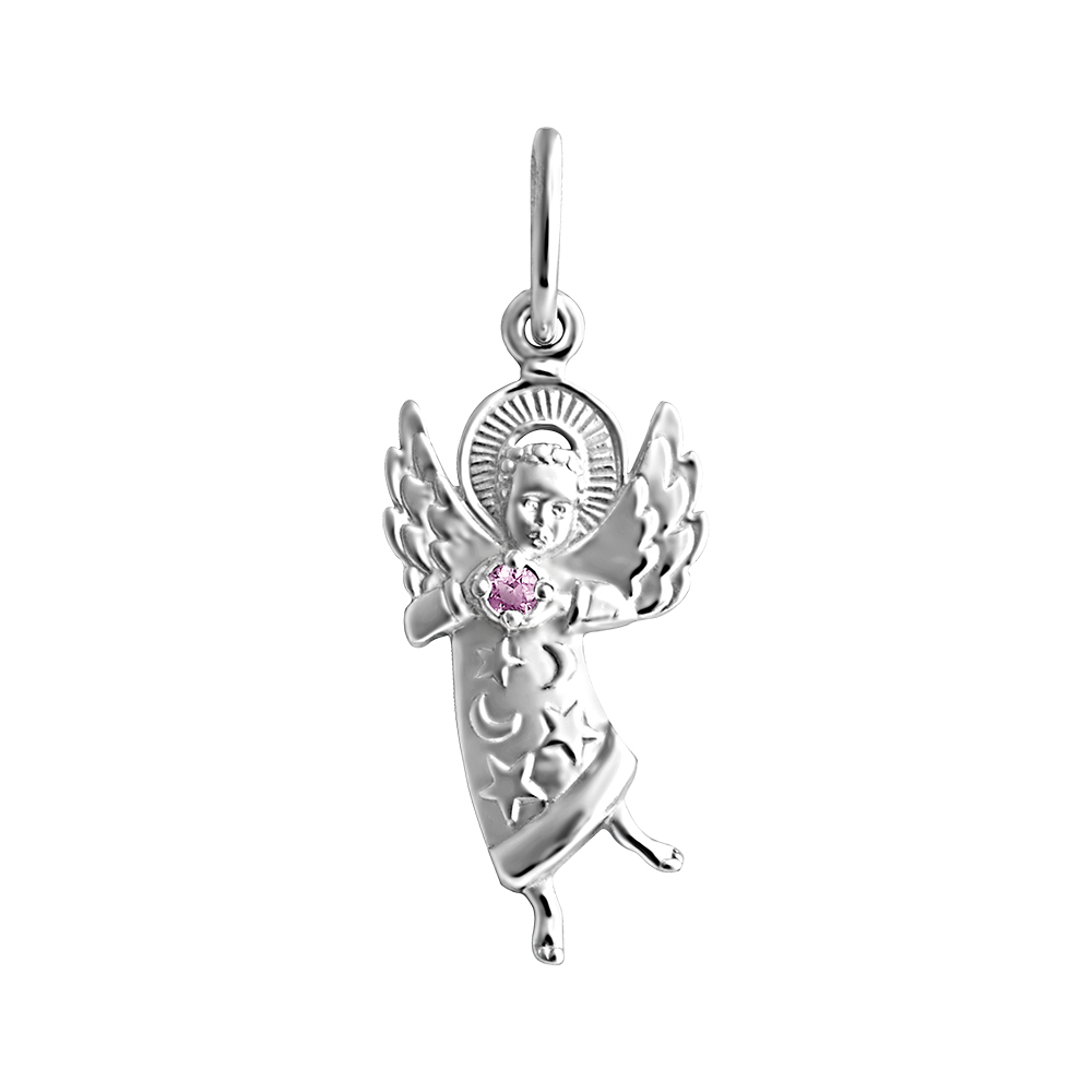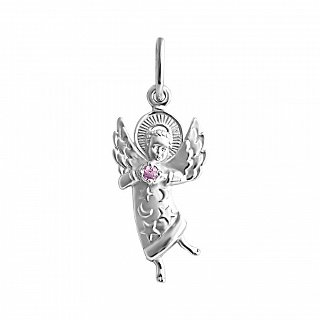 Образ (Ангел) из серебра литье с фианитом розовый 2 фото