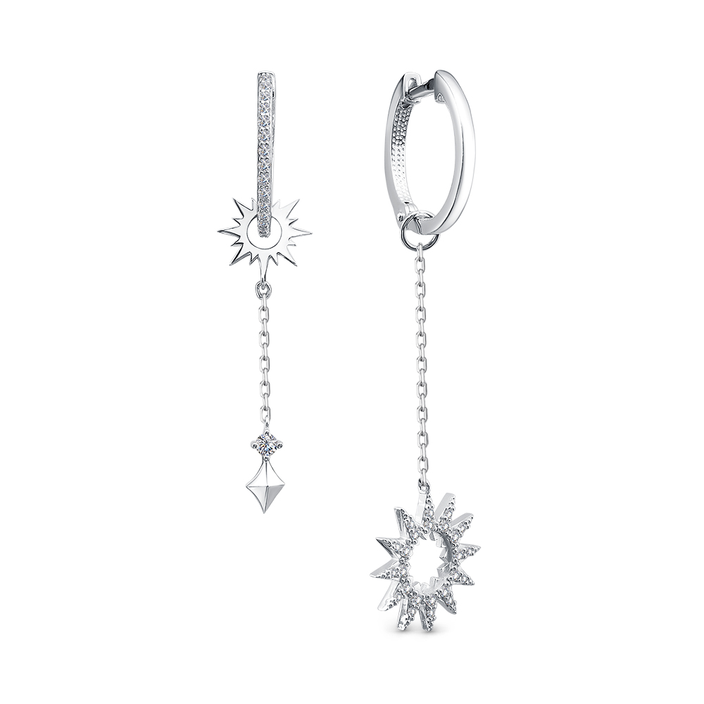 Серьги с фианитом родированные серебро 925* 3 фото