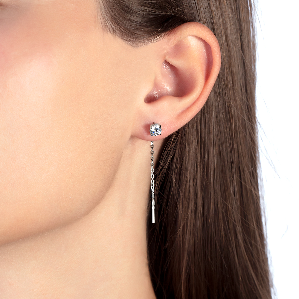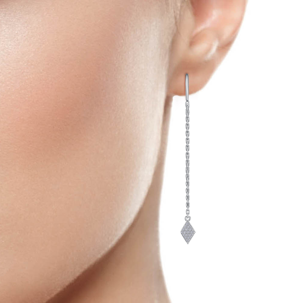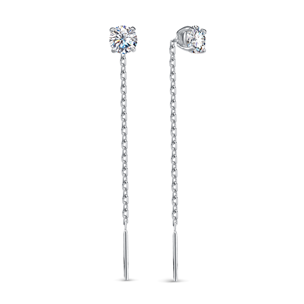 Серьги с фианитом родированные серебро 925* 4 фото
