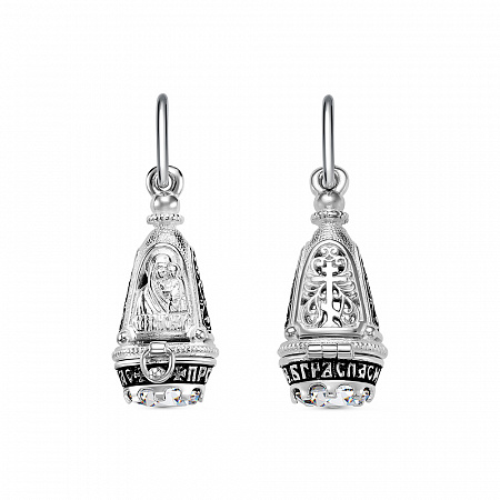Ладанка (БМ Казанская) из серебра литье с фианитом частичное чернение 2 фото