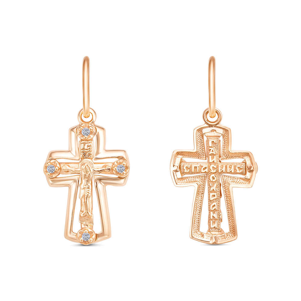 Крест с фианитом позолоченный серебро 925* 3 фото