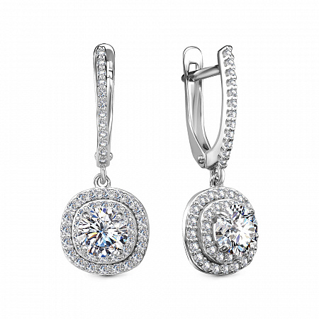 Серьги с фианитом родированные серебро 925* 2 фото