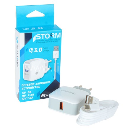 СЗУ ELTRONIC FASTER Type-C (3000mAh/5V; 2000mAh/9V; 1500mA/12V) STORM (в коробке) белый 2 фото