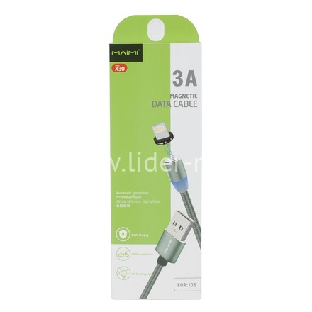 USB кабель Lightning 1.0м MAIMI X30 магнитный (графит) 3A 3 фото