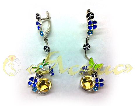 Вставка : Авантюрин синий, Аметист, Горный хрусталь, Жемчуг синт. Creamrose pearl, Опал белый, Перунит, Празиолит, Раухтопаз, Хризопраз огранка с., Цитрин