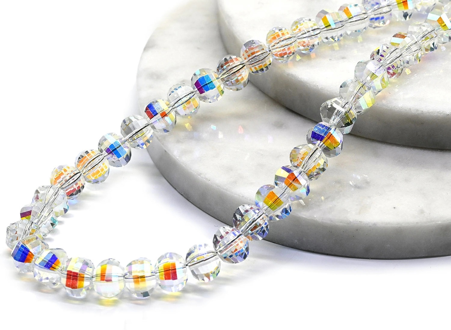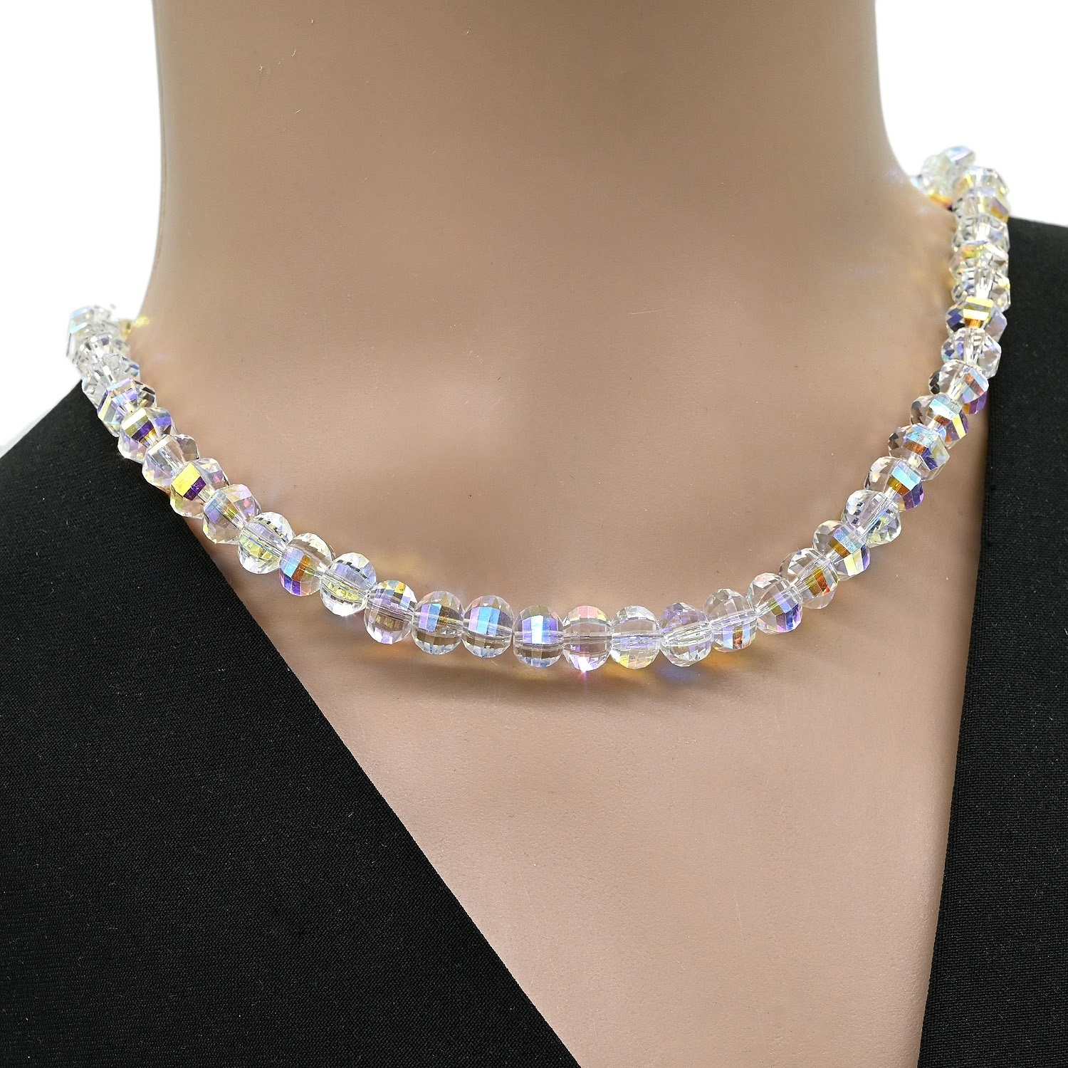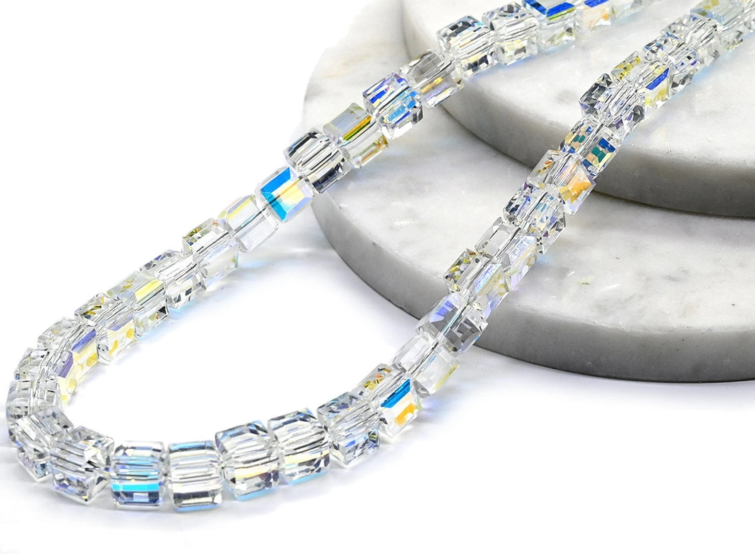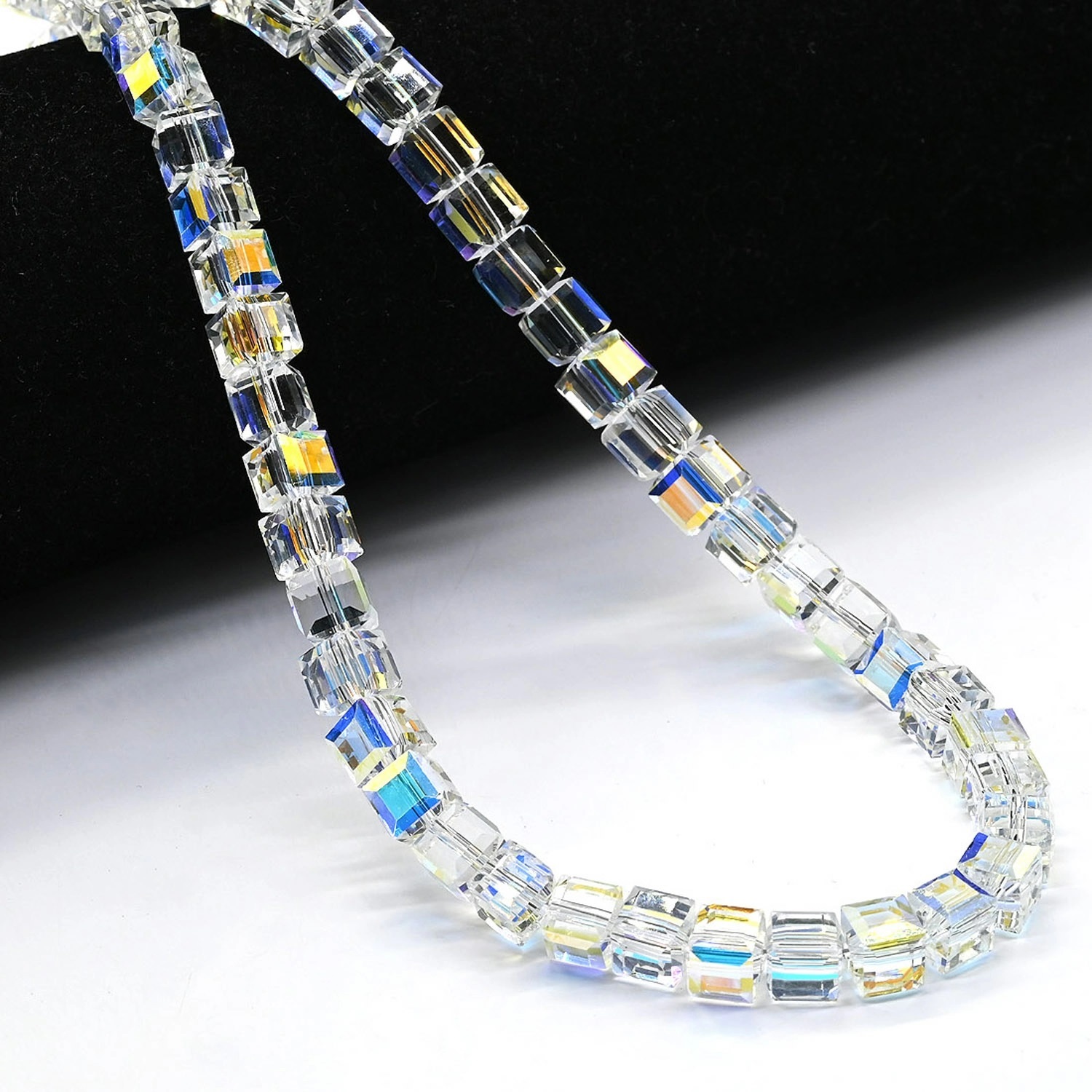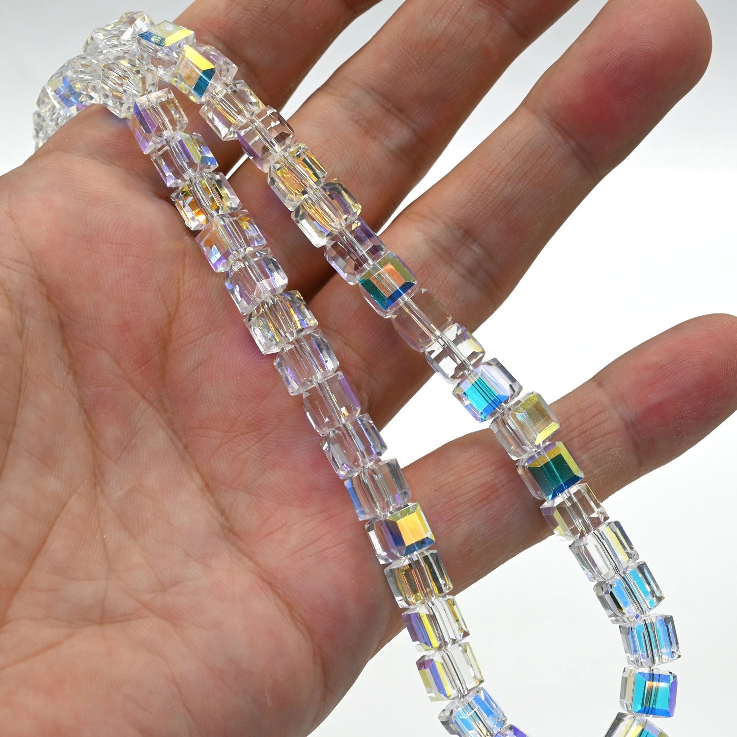 Бусы из циркона кубик с гранями 7мм цв.хрусталь хамелеон, 43см 4 фото