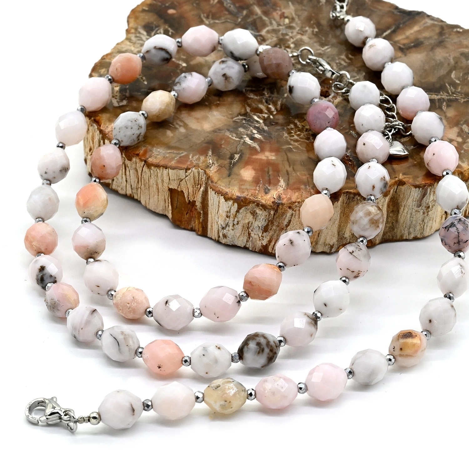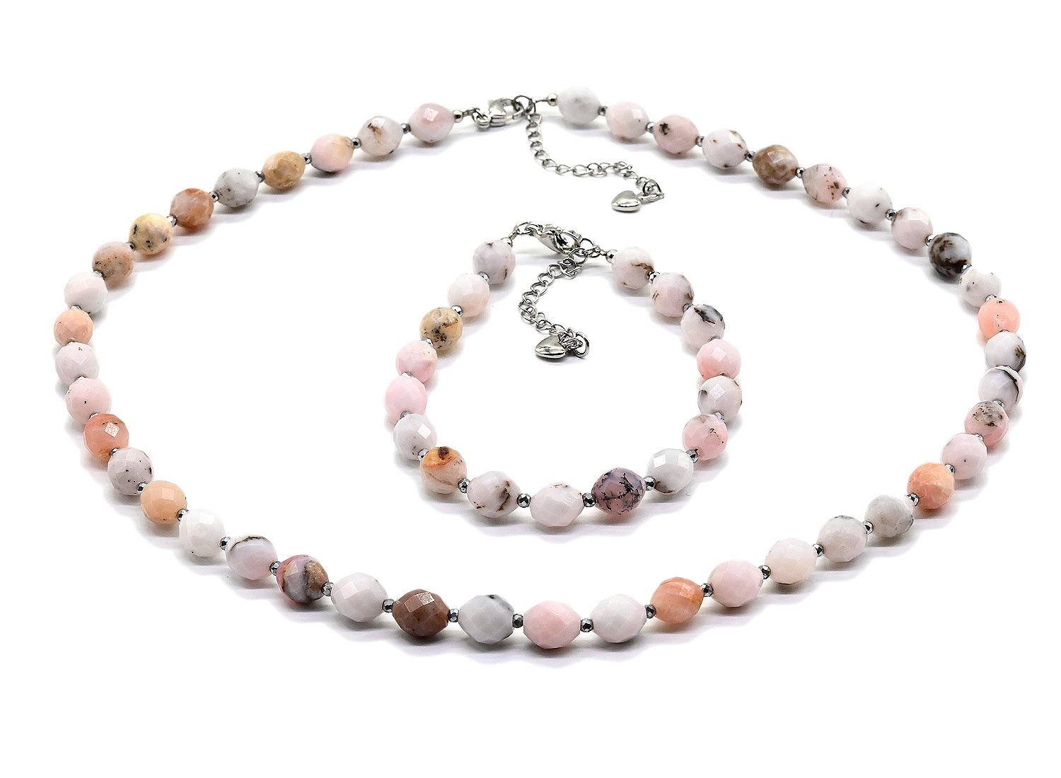 Бусы и браслет из Опала розового граненые 7*8мм, 44см, 19см 3 фото