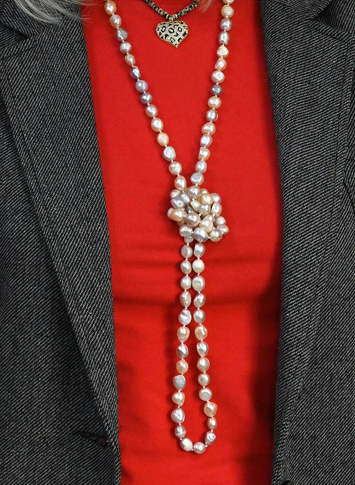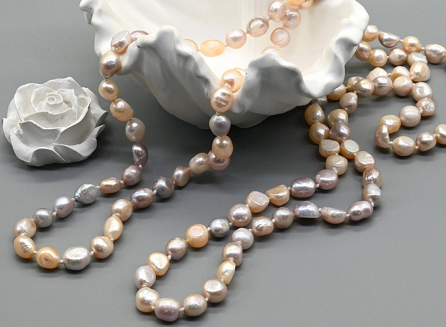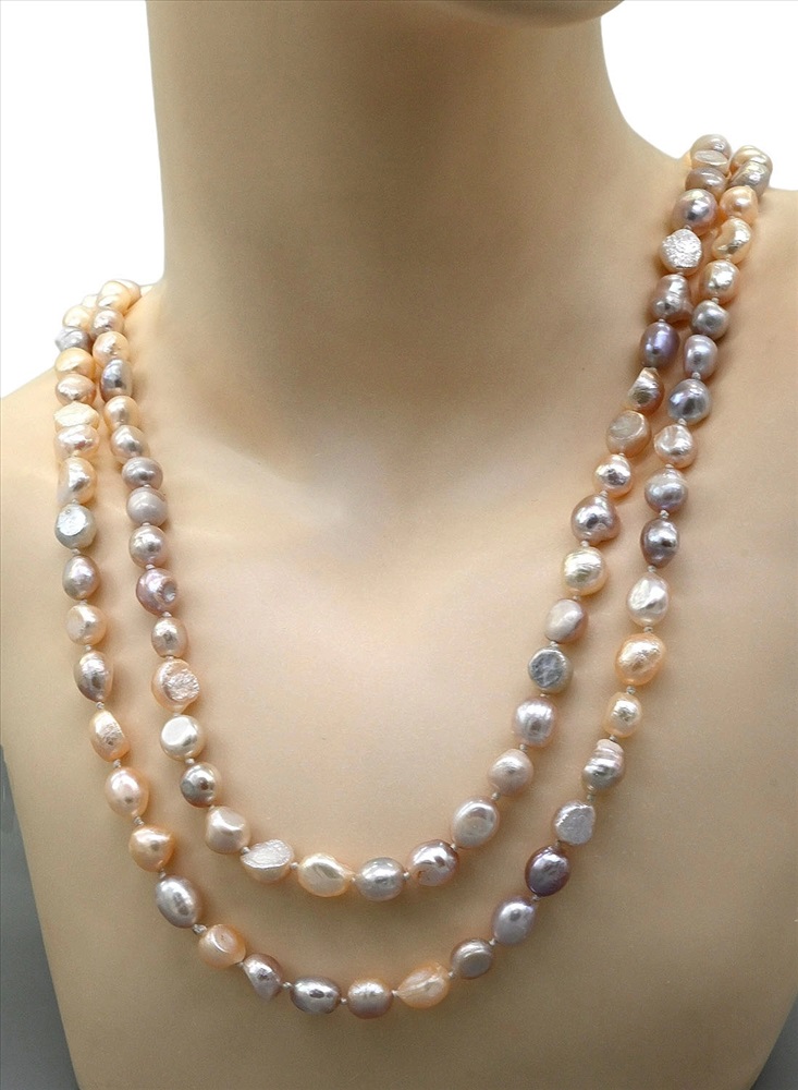 Бусы длинные из жемчуга барокко 8*10мм цвет белый, кремовый, розовый, 110см 3 фото