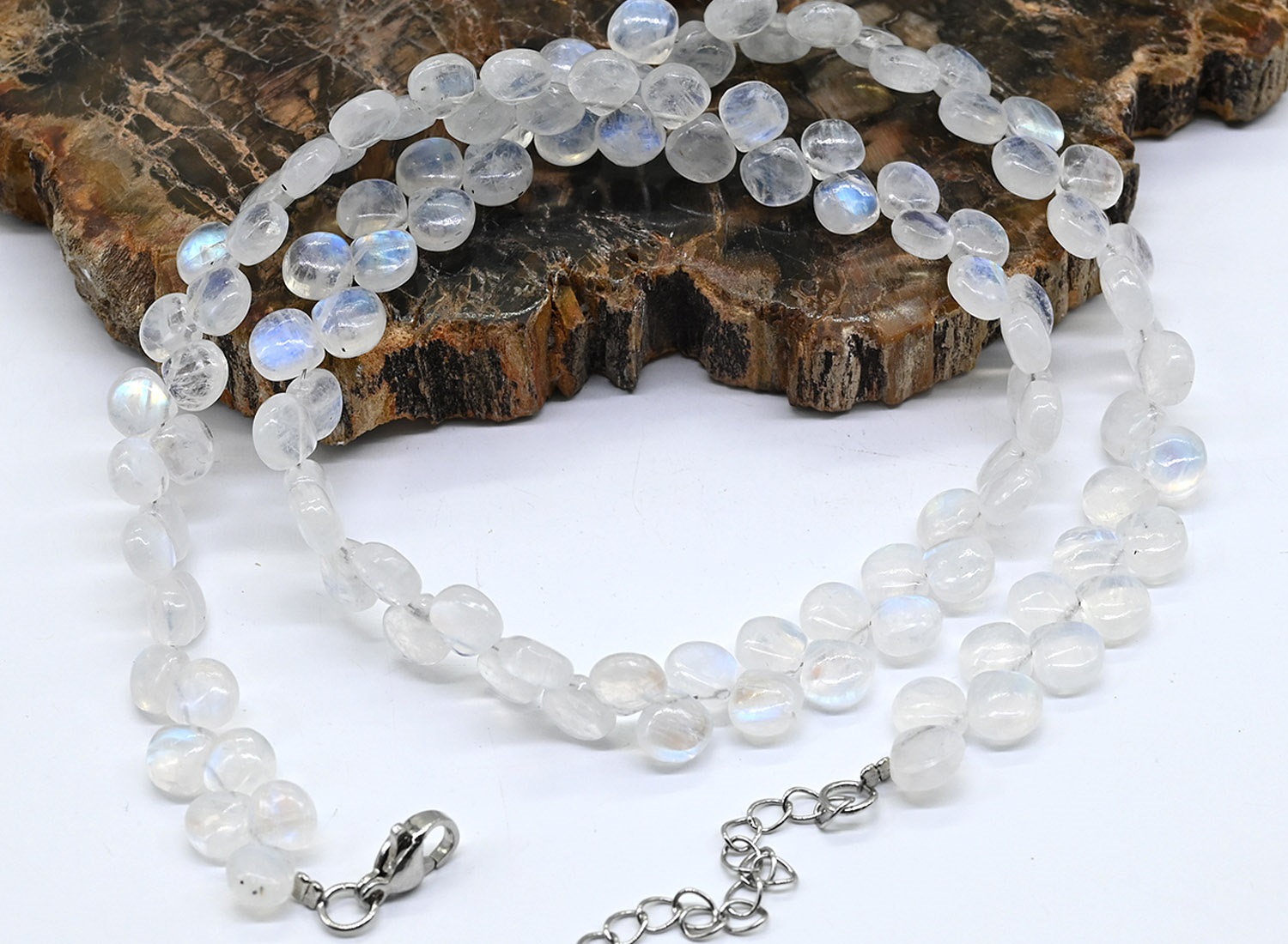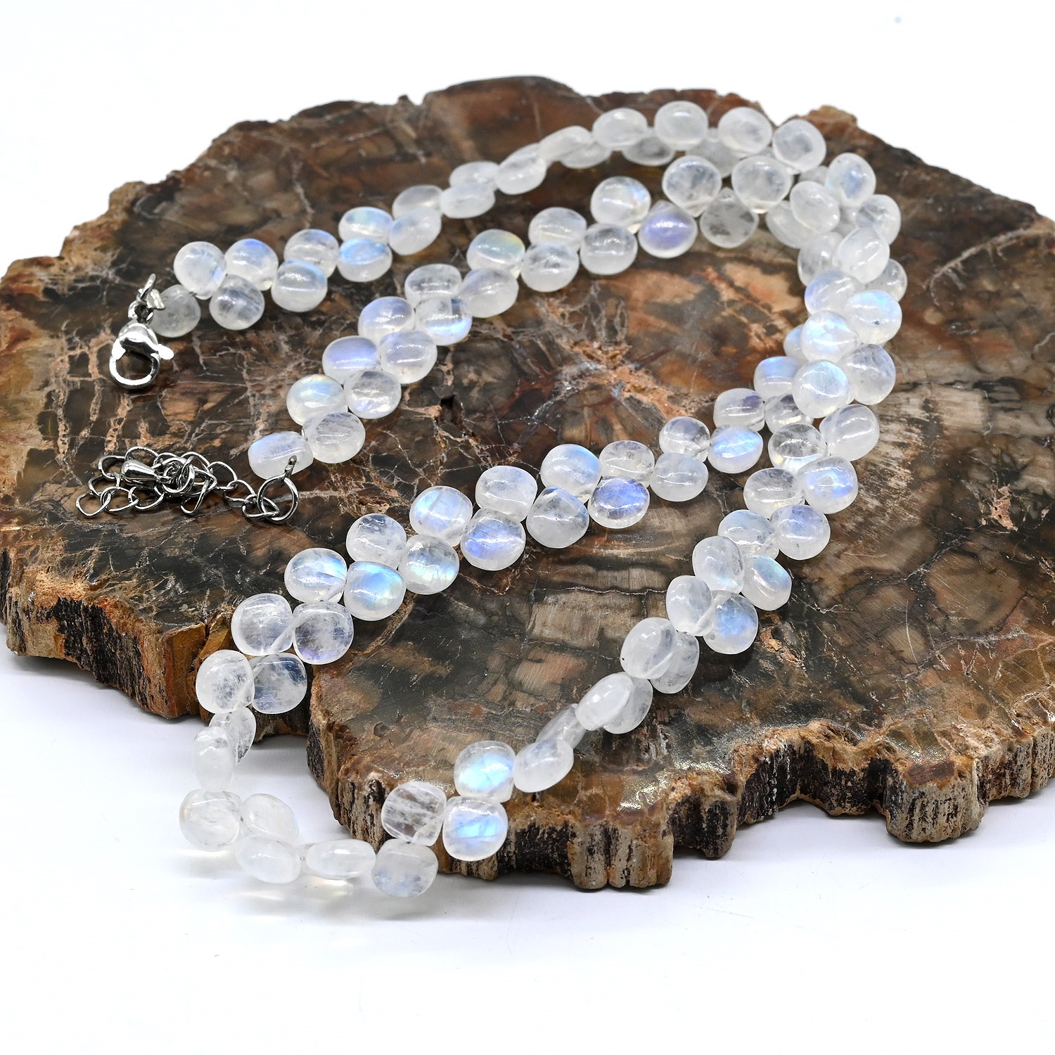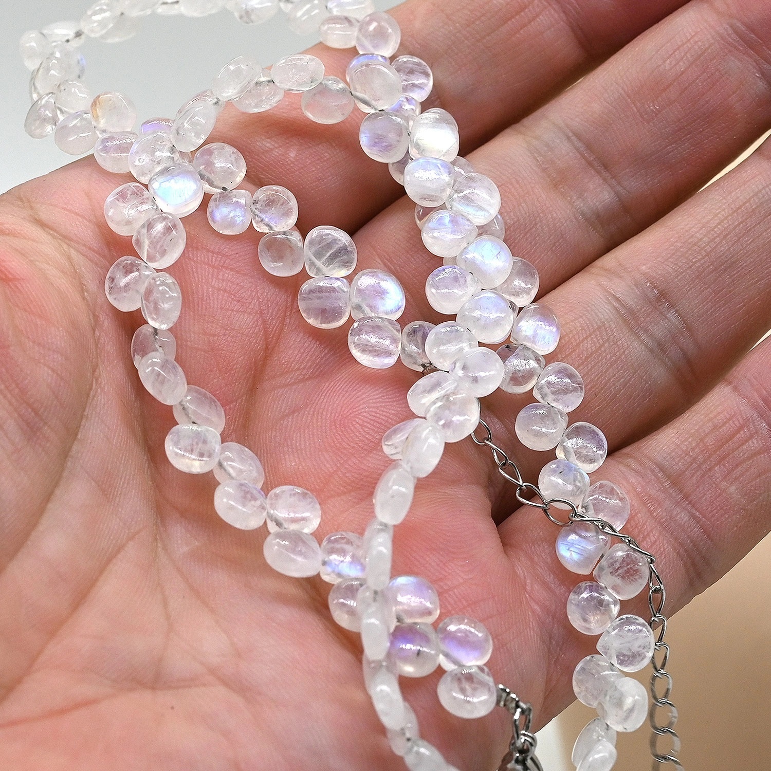 Бусы из Лунного камня адуляра капля, 44см, 19,4г 4 фото