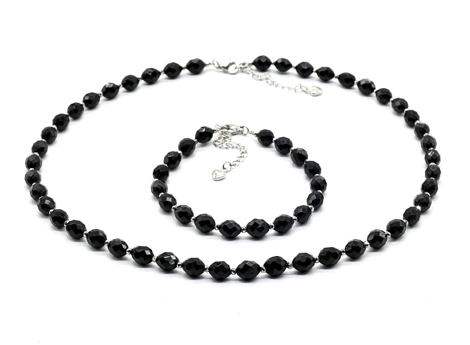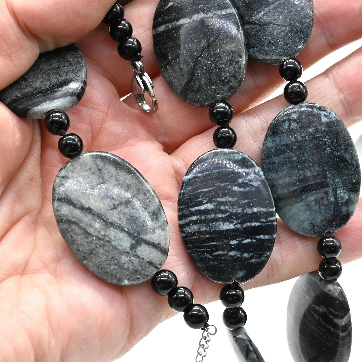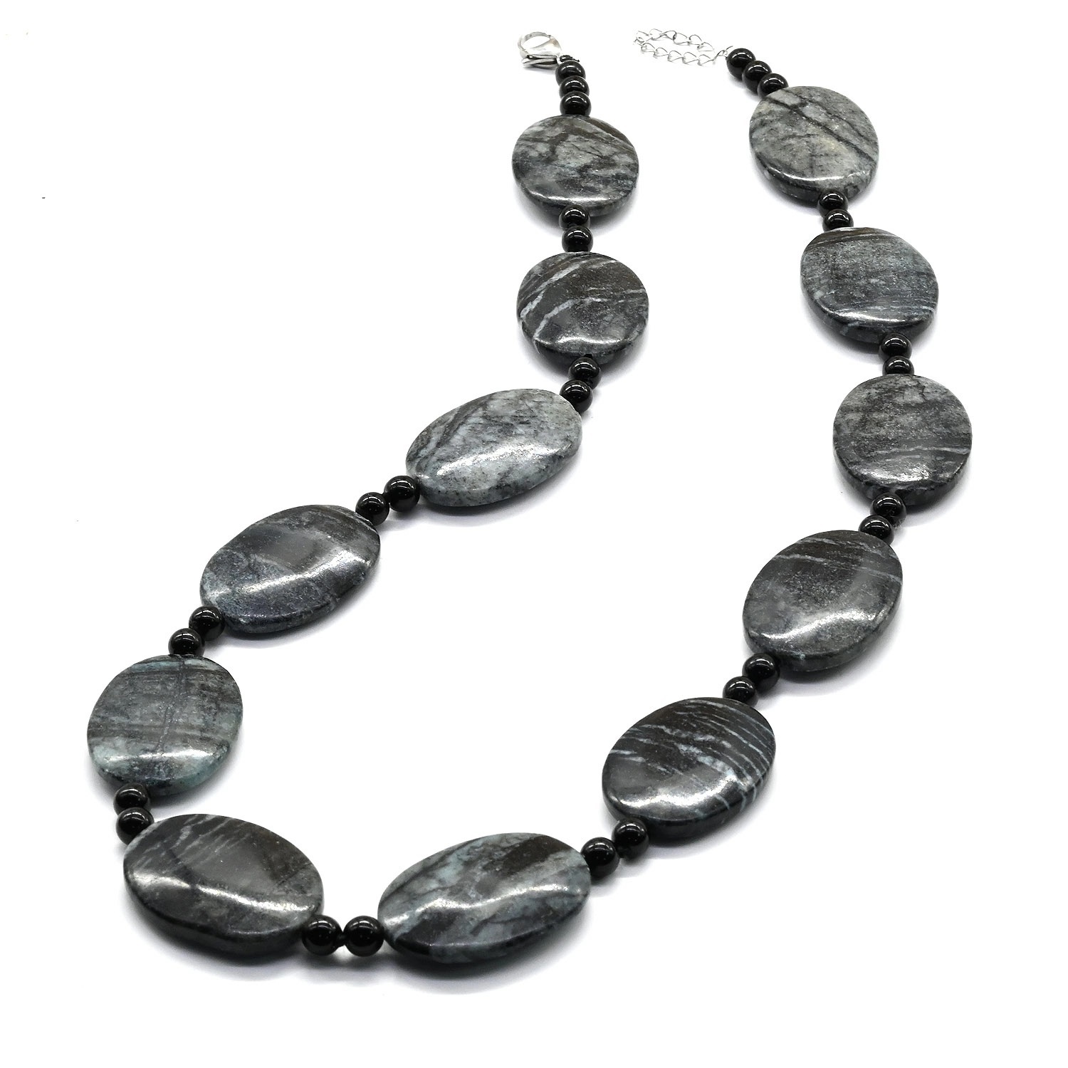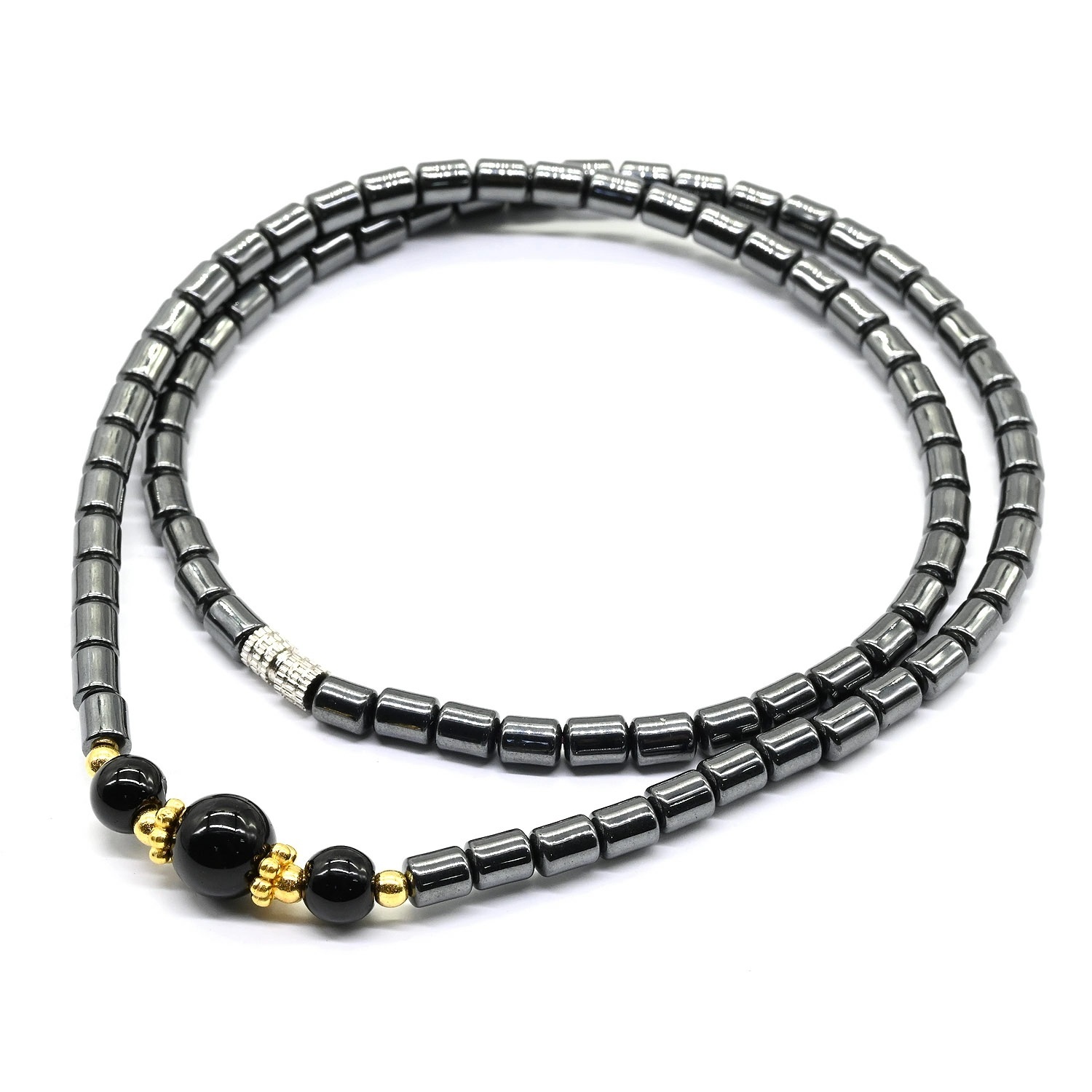 Бусы из гематита с агатом черным, 45см