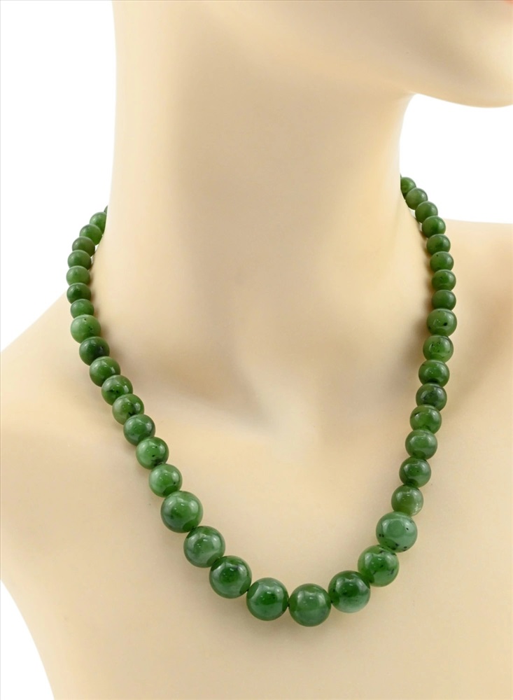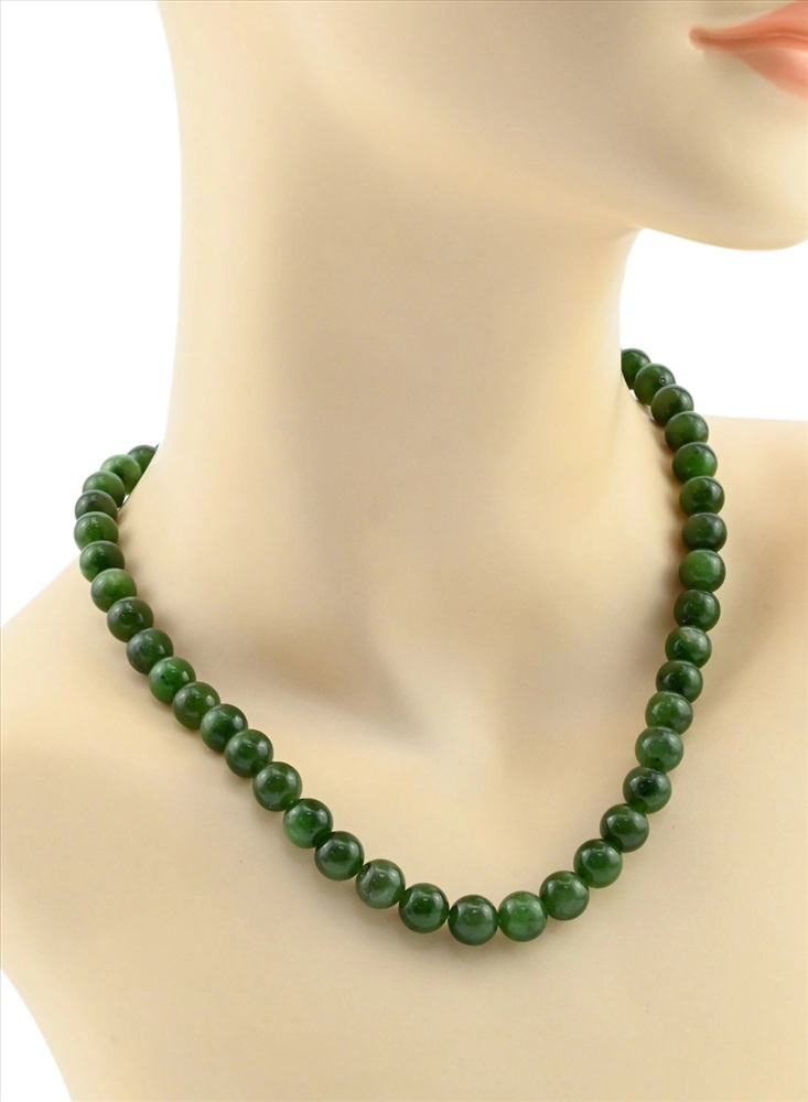 Колье из Нефрита шарики 8-12мм, 47см, 64,4г 2 фото