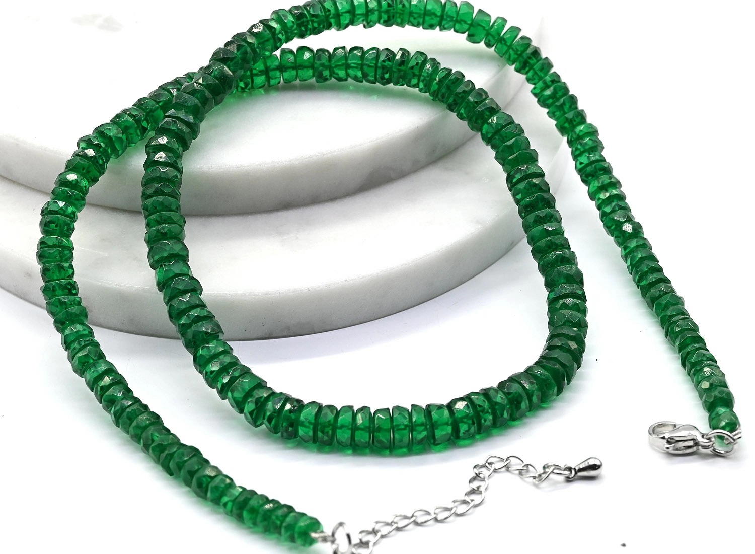 Бусы из натуральной Шпинели зеленой диски, 48см, 50г 5 фото