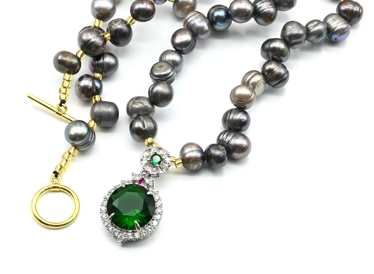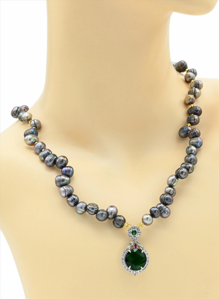 Бусы из жемчуга 8*10мм цв.черный, подвеска с цирконом 17*17мм, 52см 2 фото