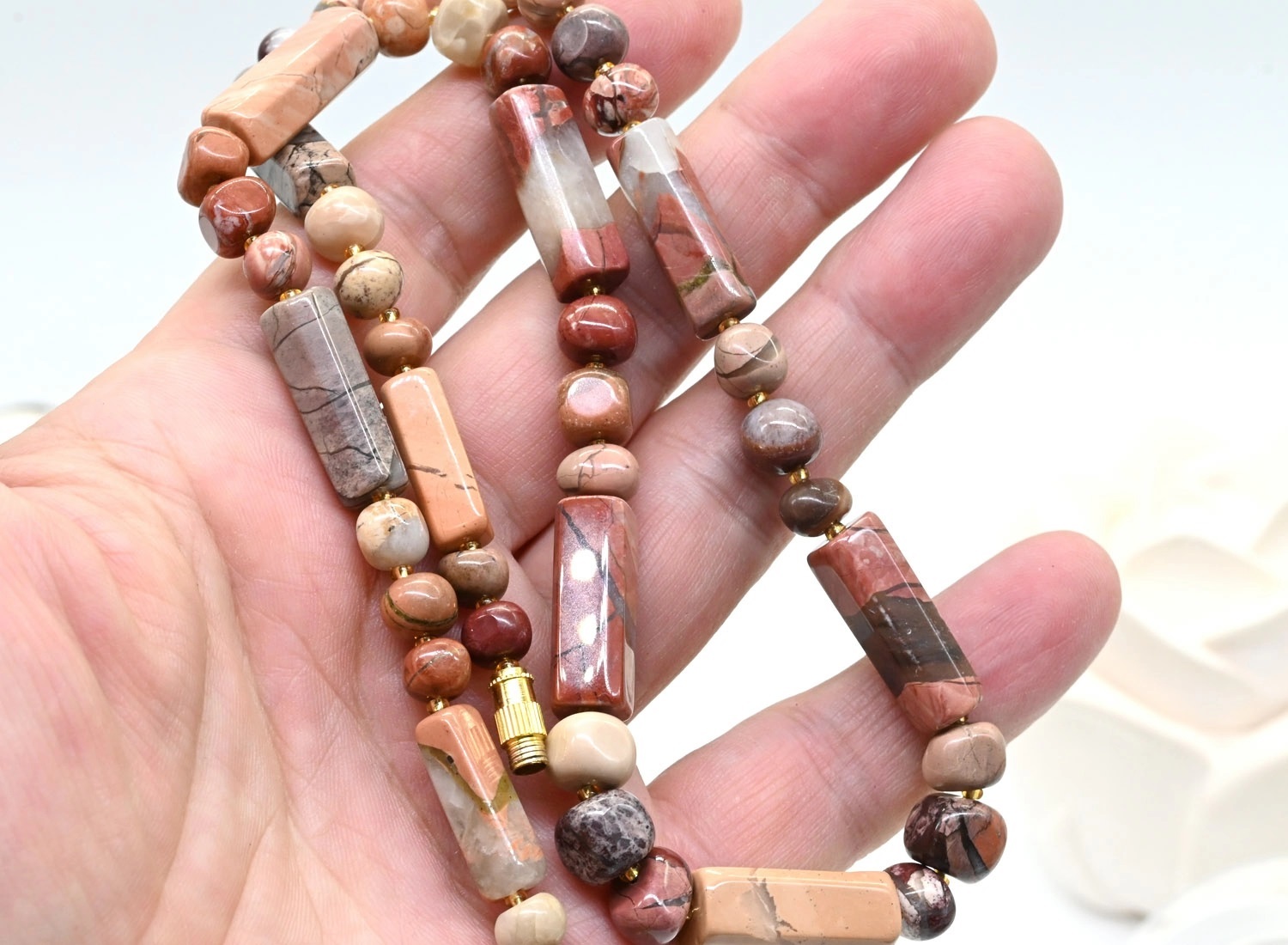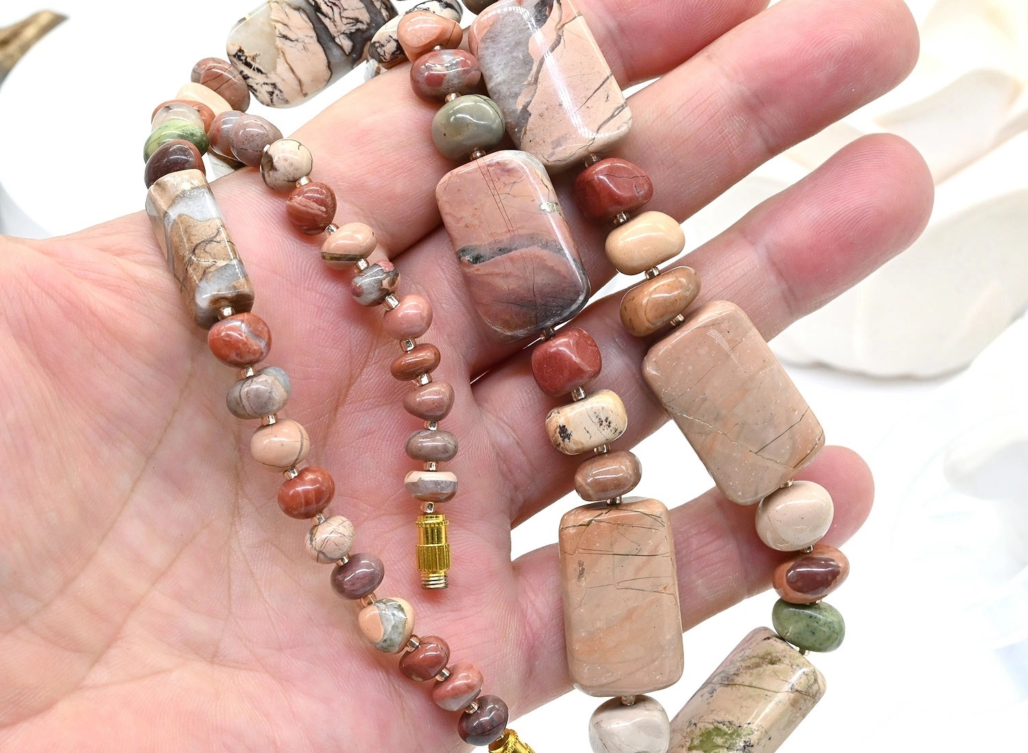 Бусы из Яшмы уральской, 61см 5 фото