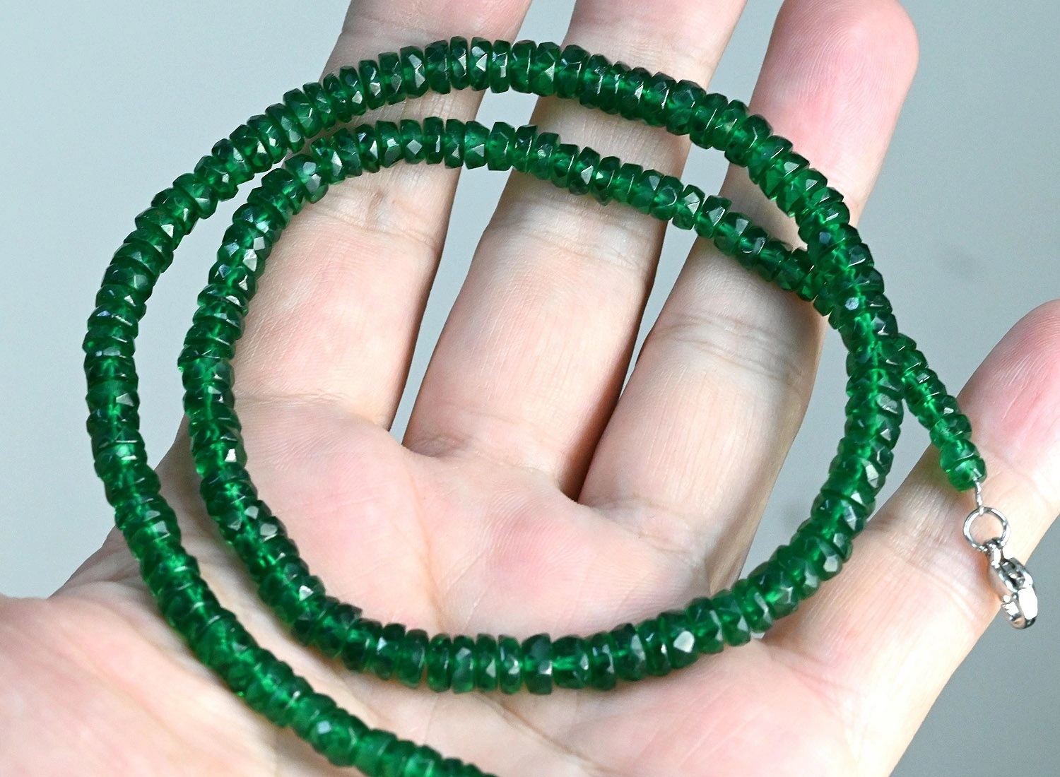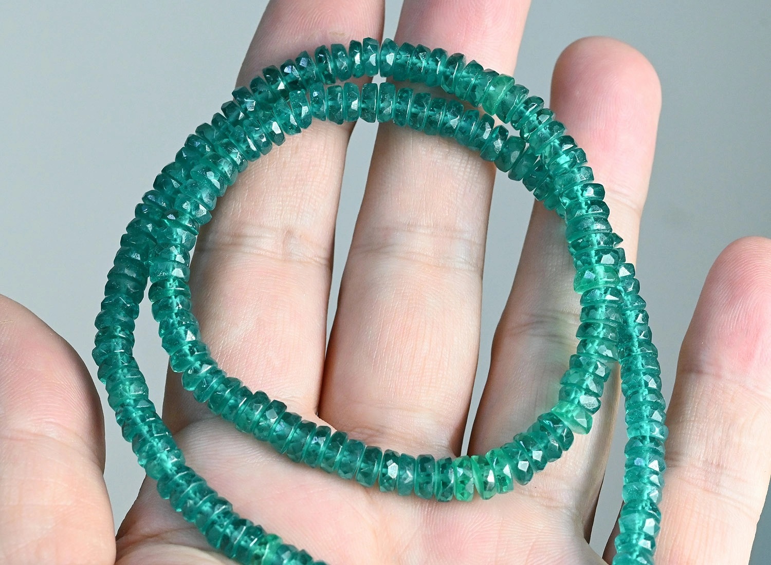 Бусы из натуральной Шпинели зеленой диски, 48см, 10г. 6 фото