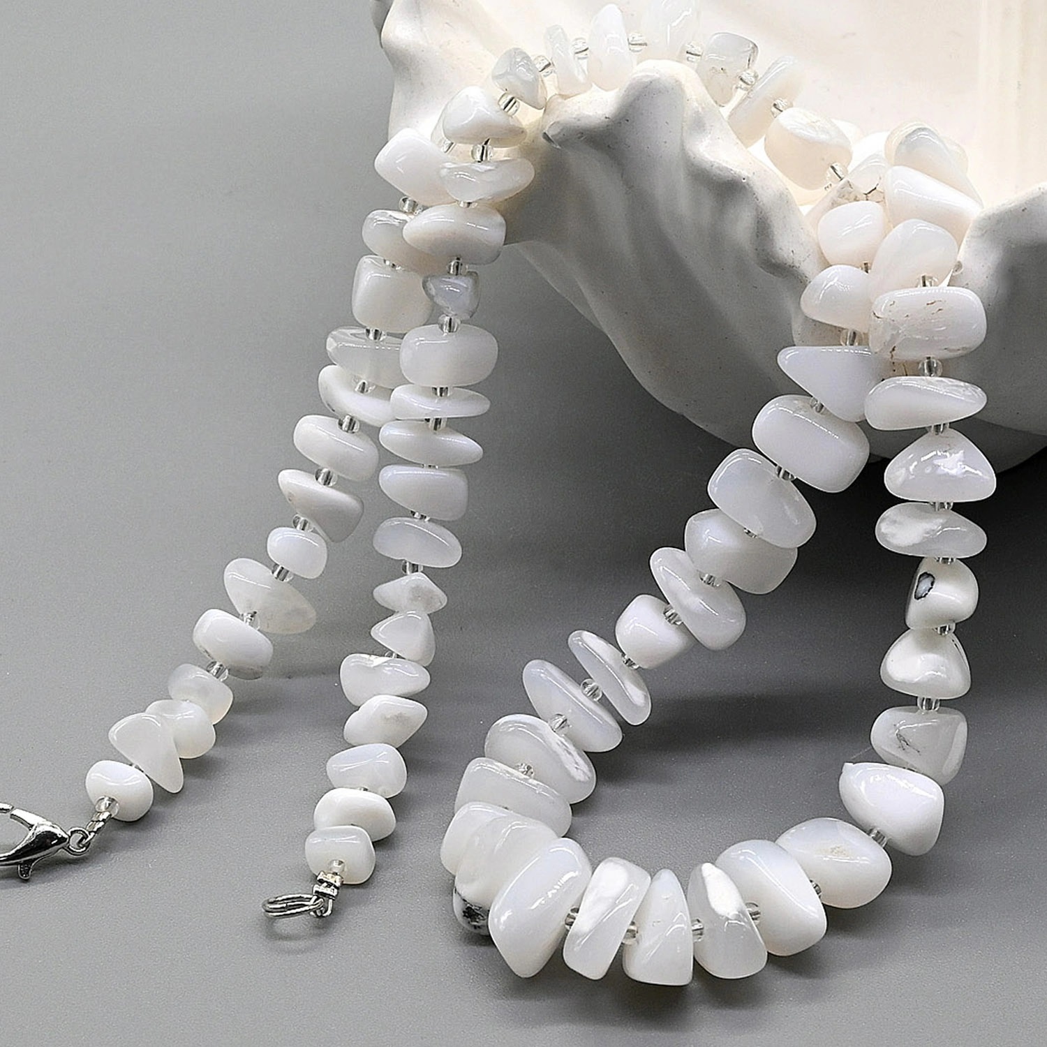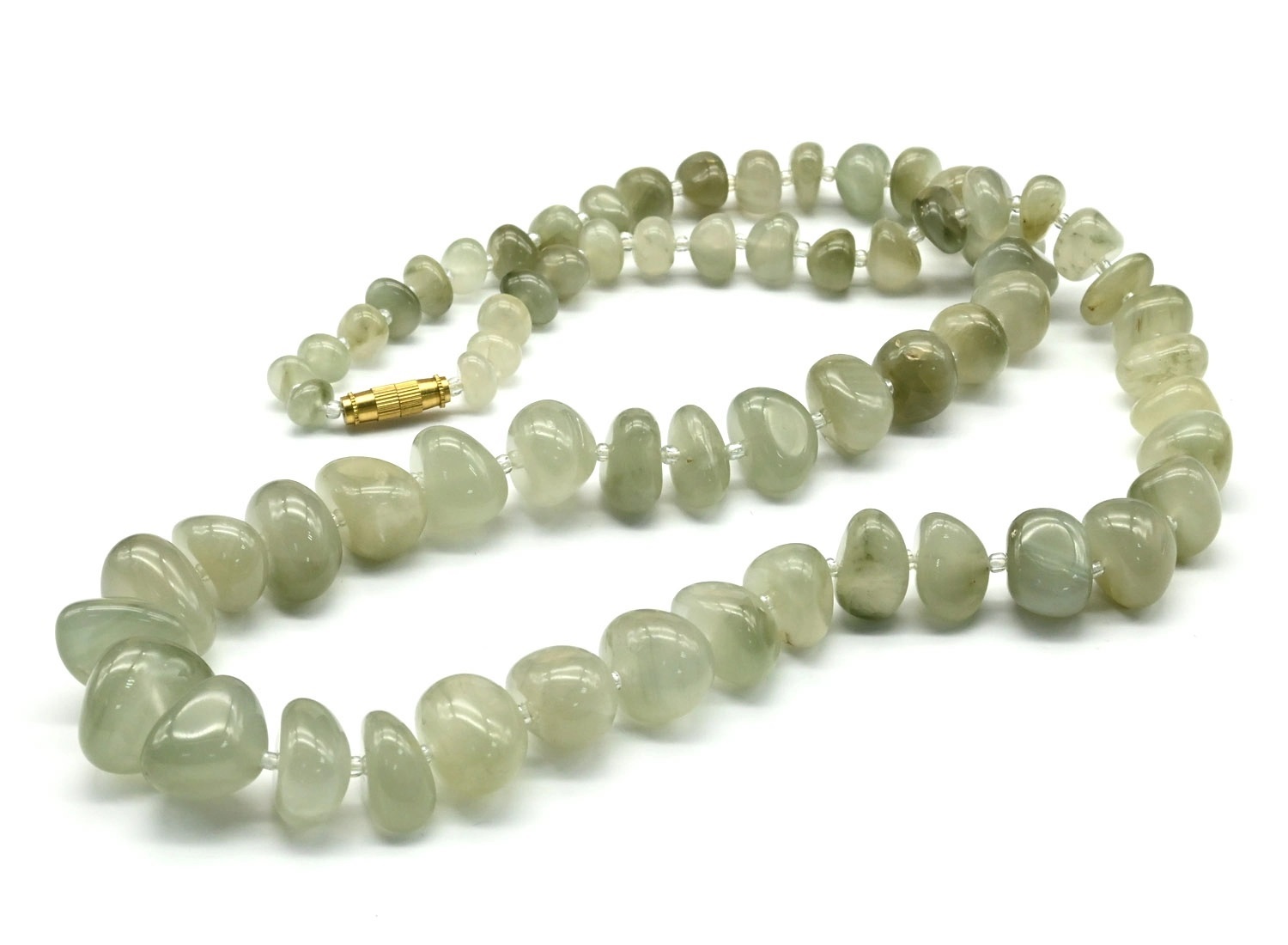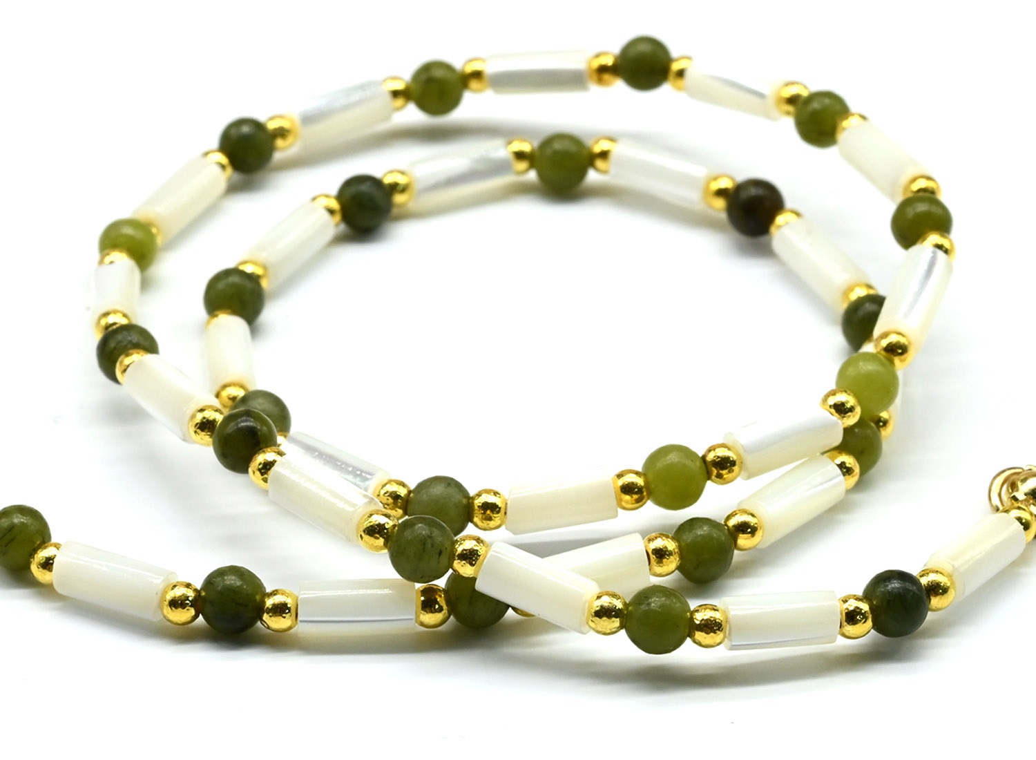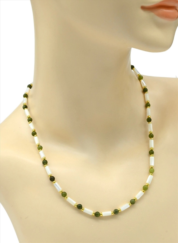 Бусы из перламутра цилиндр с нефритом, 47см 2 фото