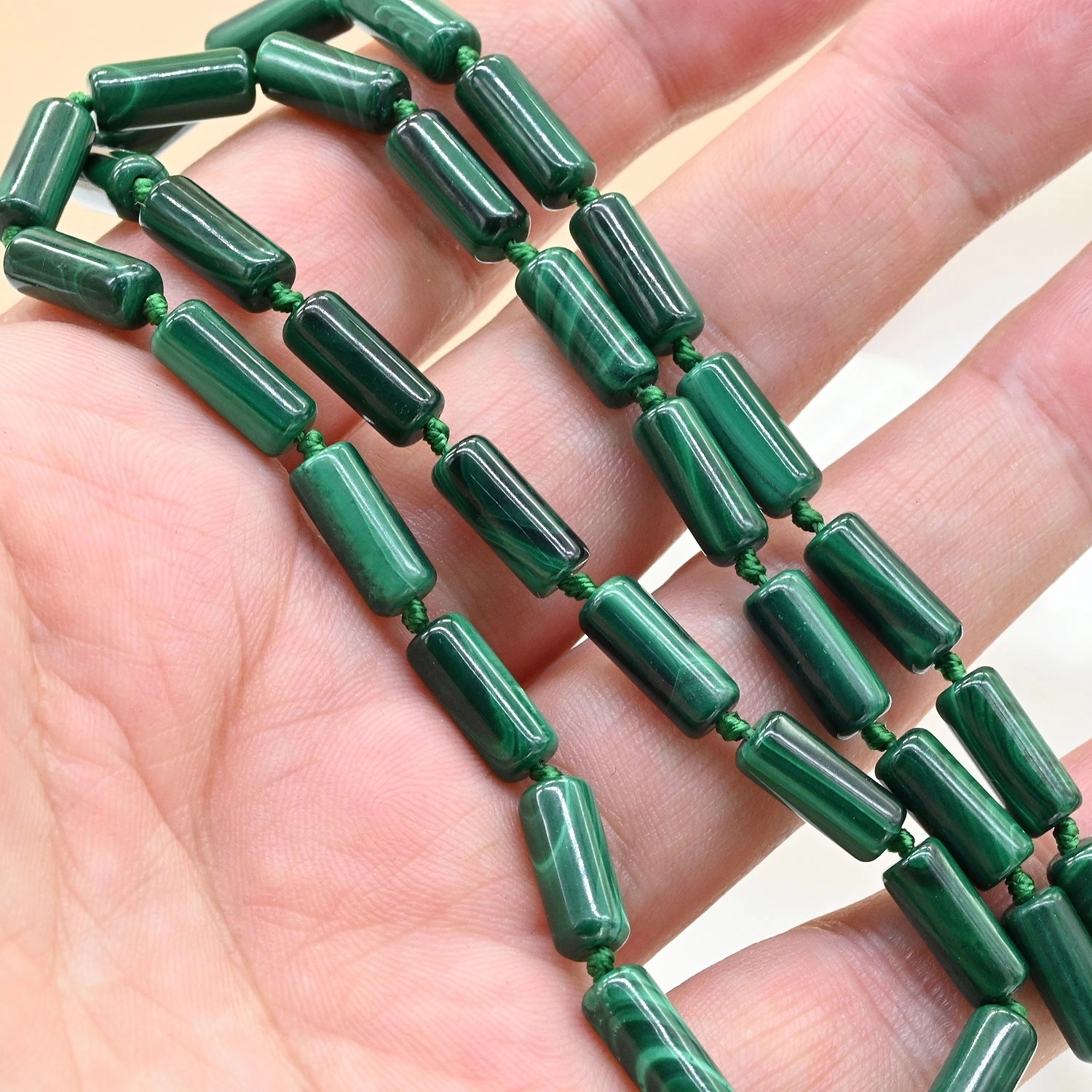 Бусы из малахита цилиндр 4*12мм, 50см 3 фото