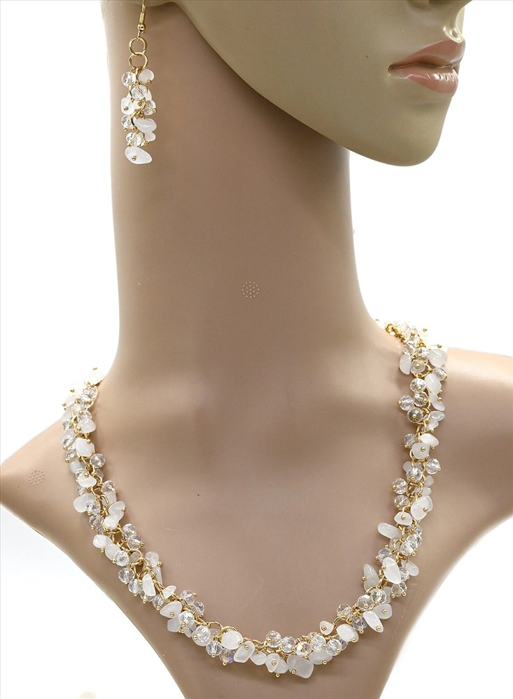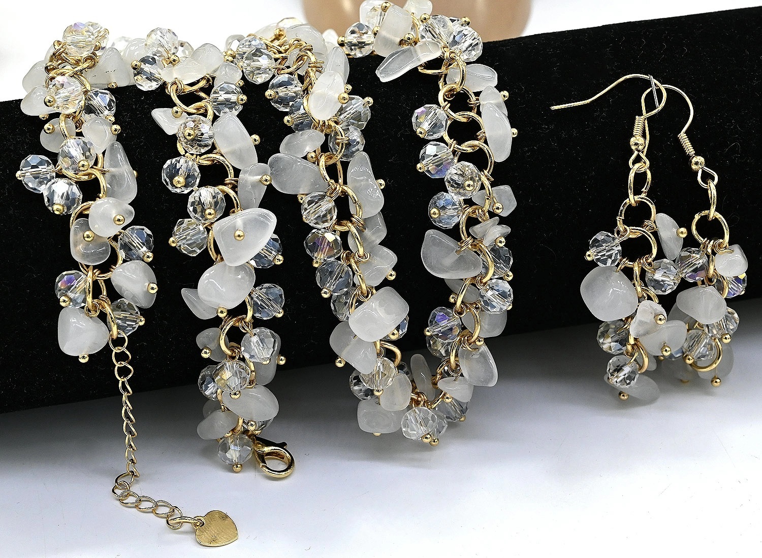 Белые бусы и серьги с кварцем Джиразоль и цирконом, 48см, 4см 2 фото
