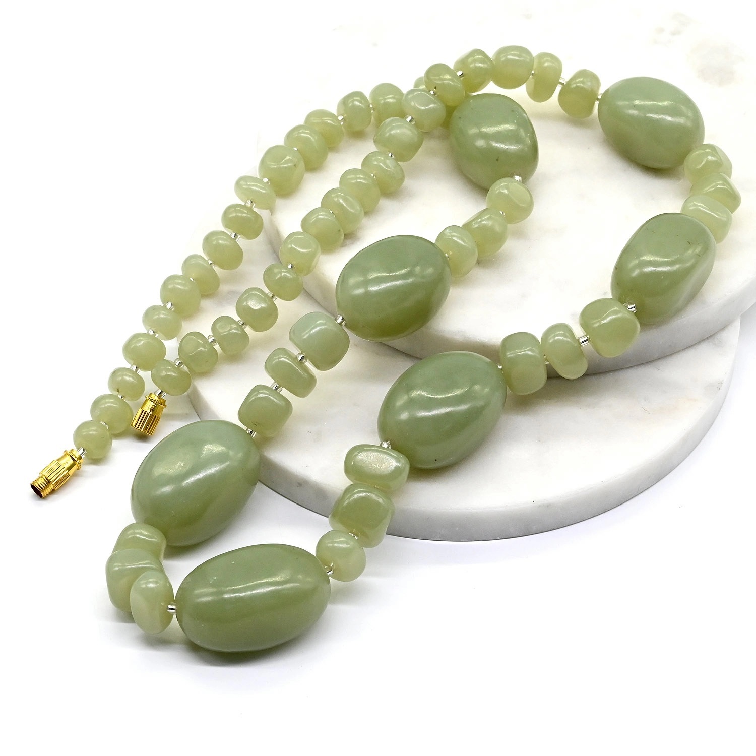 Нефрит бусы галтовка, 61см, 138г 3 фото