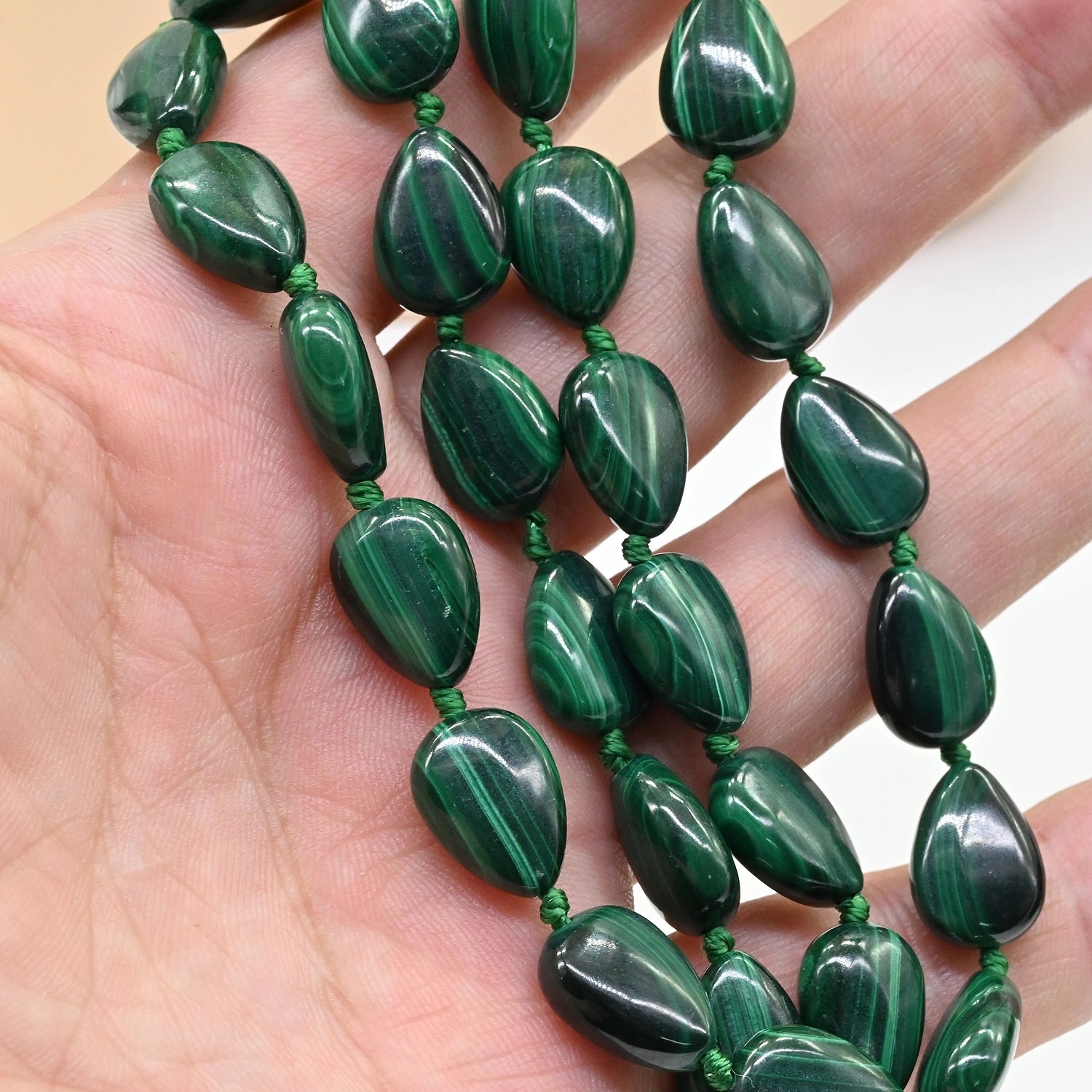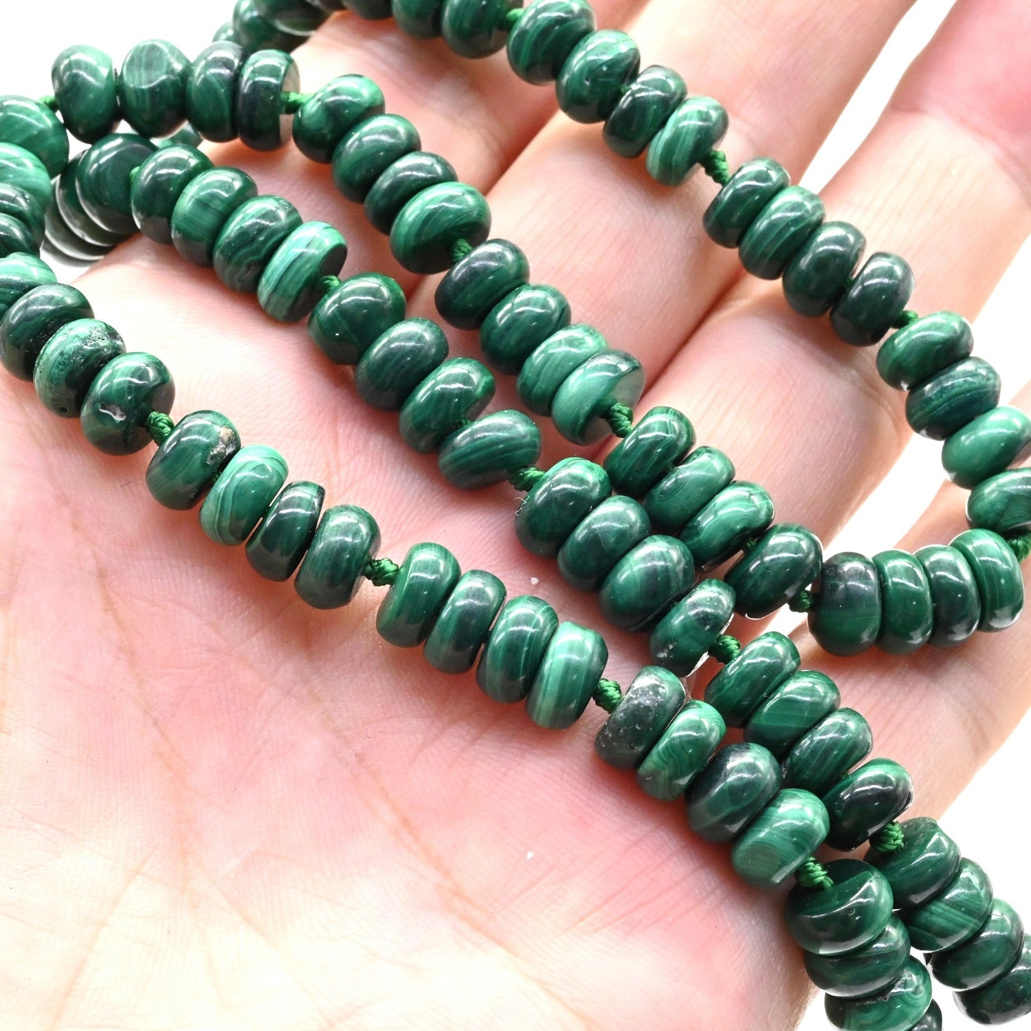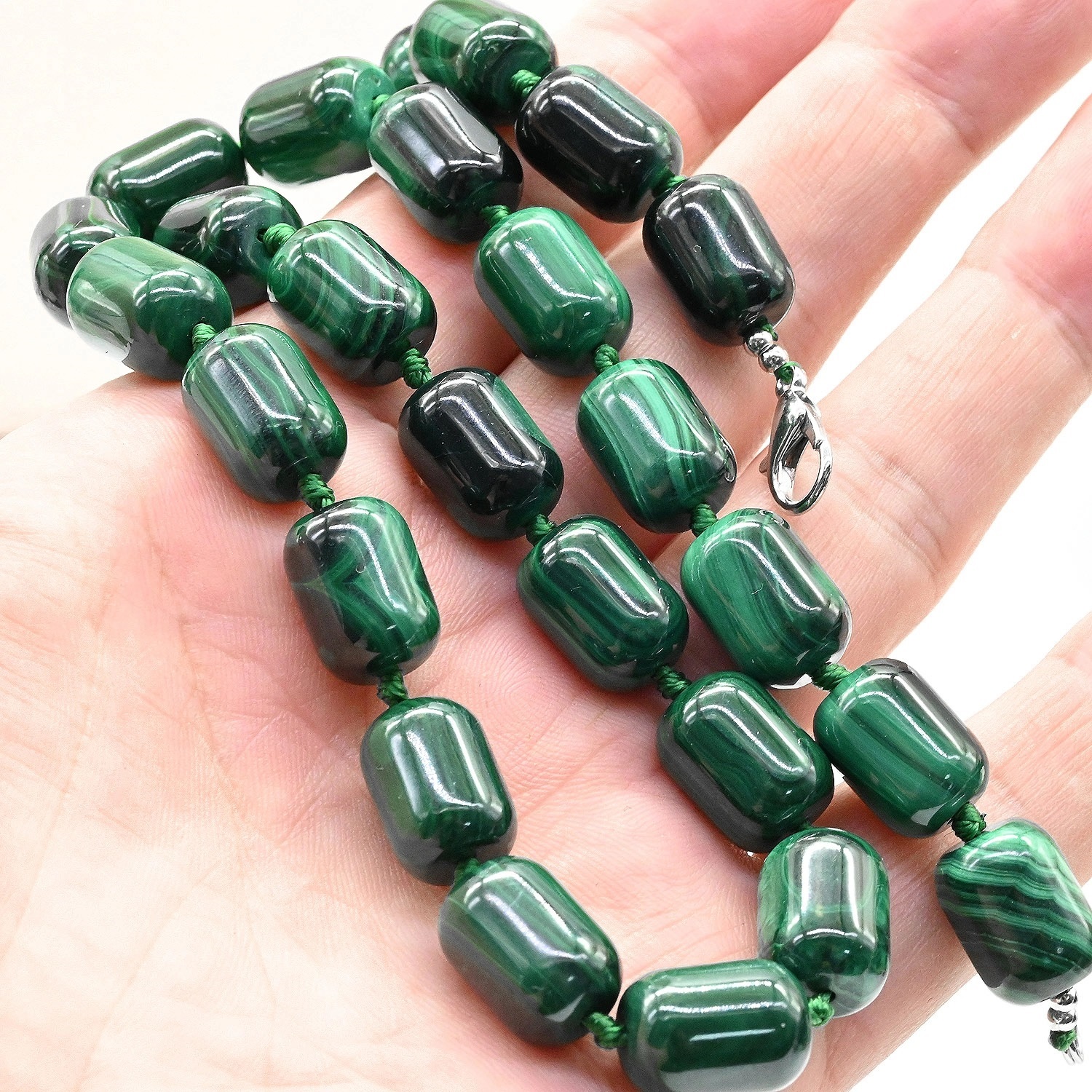Бусы из малахита бочонок 10*14мм, 49см, 113г 5 фото