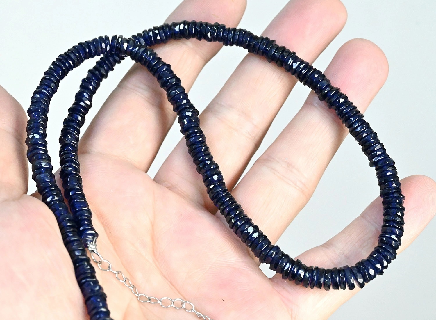 Бусы из натуральной Шпинели синей огранка, 48см, 53г. 6 фото